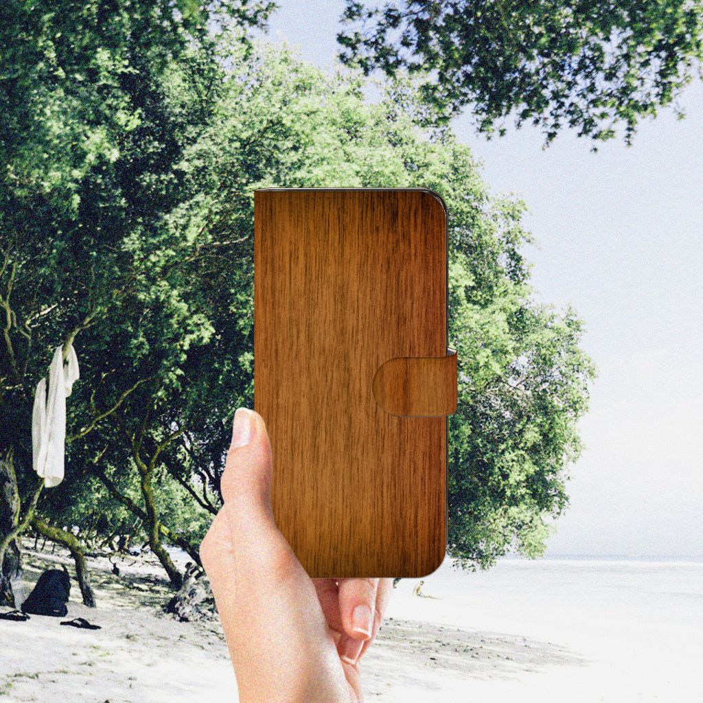 Motorola Moto G73 Book Style Case met pasjeshouder Donker Hout