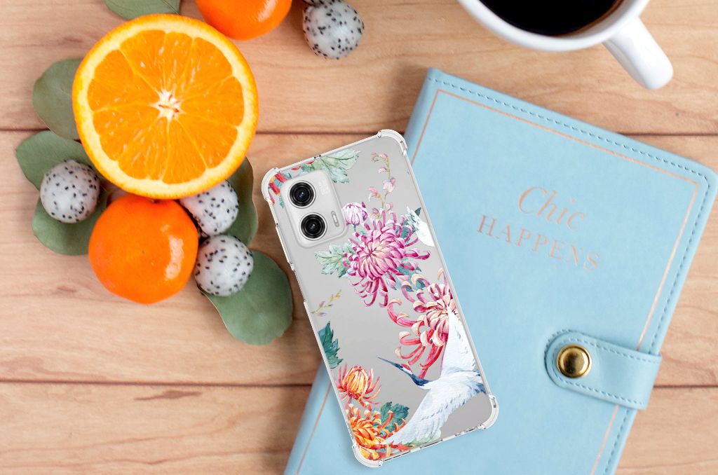 Ben je op zoek naar een uniek telefoonhoesje voor je Motorola Moto G73? Dan ben je bij B2C Telecom aan het juiste adres! Speciaal voor jou hebben we dit prachtige Bird Flowers design in onze collectie hoesjes opgenomen. Het design wordt bedrukt op een Case Anti-shock en is gemaakt van flexibel rubber. Het hoesje is perfect voor de actieve smartphonegebruiker door de opstaande randen/hoeken. Denk aan mensen die veel sporten, reizen of wandelen en net iets meer zekerheid willen als het op hun geliefde telefoon aankomt. Het design wordt alleen aan de bovenkant van het hoesje bedrukt en de randen blijven transparant. Aan de zijkanten zijn uitsparingen gemaakt waardoor je met gemak alle knoppen en poorten kunt bedienen. Wij adviseren om dit hoesje in combinatie met een screenprotector te gebruiken voor een langere levensduur van je telefoon. Wil je dit hoesje nog iets extra's geven? Voeg dan gratis je naam of een quote toe! Is dit design hoesje toch niet helemaal wat je zocht? Ontwerp dan zelf een hoesje in ons ontwerpprogramma.