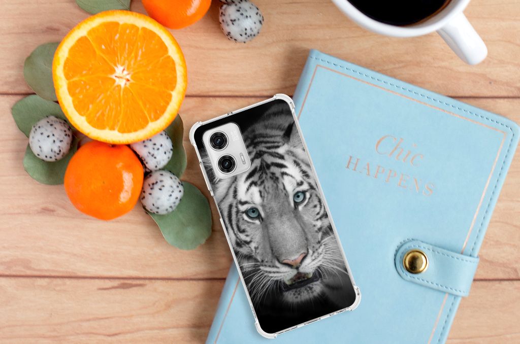 Ben je op zoek naar een uniek telefoonhoesje voor je Motorola Moto G73? Dan ben je bij B2C Telecom aan het juiste adres! Speciaal voor jou hebben we dit prachtige Tijger design in onze collectie hoesjes opgenomen. Het design wordt bedrukt op een Case Anti-shock en is gemaakt van flexibel rubber. Het hoesje is perfect voor de actieve smartphonegebruiker door de opstaande randen/hoeken. Denk aan mensen die veel sporten, reizen of wandelen en net iets meer zekerheid willen als het op hun geliefde telefoon aankomt. Het design wordt alleen aan de bovenkant van het hoesje bedrukt en de randen blijven transparant. Aan de zijkanten zijn uitsparingen gemaakt waardoor je met gemak alle knoppen en poorten kunt bedienen. Wij adviseren om dit hoesje in combinatie met een screenprotector te gebruiken voor een langere levensduur van je telefoon. Wil je dit hoesje nog iets extra's geven? Voeg dan gratis je naam of een quote toe! Is dit design hoesje toch niet helemaal wat je zocht? Ontwerp dan zelf een hoesje in ons ontwerpprogramma.