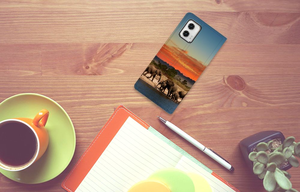Dit hoesje is zo sterk als een olifant. Dat is goed nieuws, want jouw telefoon heeft een zeer goede bescherming nodig. Dat krijg je met dit design hoesje met print van Olifanten. De Afrikaanse olifant, het allergrootste landdier ter wereld, heeft waarschijnlijk het meest te lijden gehad van stroperij om het ivoor. Deze dieren verdienen dus een goede bescherming, net als jouw smartphone. Met een Motorola Moto G73 Hoesje maken met olifant erop krijg je dit zeker voor elkaar. De stand case beschermt alle zijden van je telefoon en heeft aan de binnenzijde een vakje waarin je een pasje kunt opbergen. De sterke olifant komt zeer goed tot zijn recht op deze case, die aan de binnenkant een houder heeft van tpu. Ook de magneet aan de binnenkant is zeer handig. Alle zijden van de case worden bedrukt met olifanten.