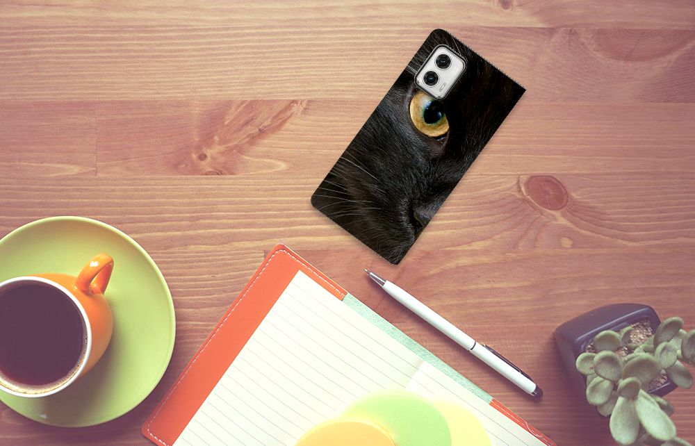 warte katten zijn heel speciaal, vandaar we een exemplaar op een design hoesje hebben gezet. Een zwarte kat schijnt bijvoorbeeld veel beter te kunnen horen dan witte katten. Deze zwarte kat staat op zeer prominente wijze op een stand case. Een Motorola Moto G73 Hoesje maken met zwarte kat beschermt jouw smartphone aan alle zijden en wordt ook volledig bedrukt. De stand case met zwarte kat ziet er geweldig uit en is voorzien van verschillende uitsparingen en een speciale standaard. Alle zijden van de case zijn bedrukt. Dit design hoesje is van TPU aan de binnenzijde en zeer flexibel. Verder heeft de case een houder voor een pasje.