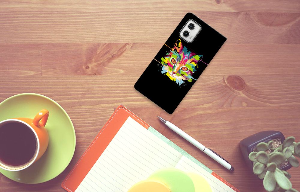 Ben je op zoek naar een uniek telefoonhoesje voor je Motorola Moto G73? Dan ben je bij B2C Telecom aan het juiste adres! Speciaal voor jou hebben we dit prachtige Cat Color design in onze collectie hoesjes opgenomen. Het design wordt bedrukt op een Magnet Case en heeft een vakje aan de binnenkant voor een pasje. Het fijne aan dit hoesje is dat je het als standaard neer kunt zetten. Hierdoor geniet je nog meer als je een filmpje aan het kijken bent op je telefoon. Het hoesje wordt afgesloten door magneten aan de binnenkant. Wil je dit design hoesje nog iets extra's geven? Voeg dan gratis je naam of een quote toe! Is dit design hoesje toch niet helemaal wat je zocht? Ontwerp dan zelf een hoesje in ons ontwerpprogramma.