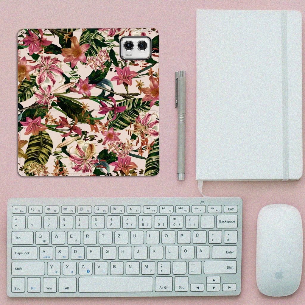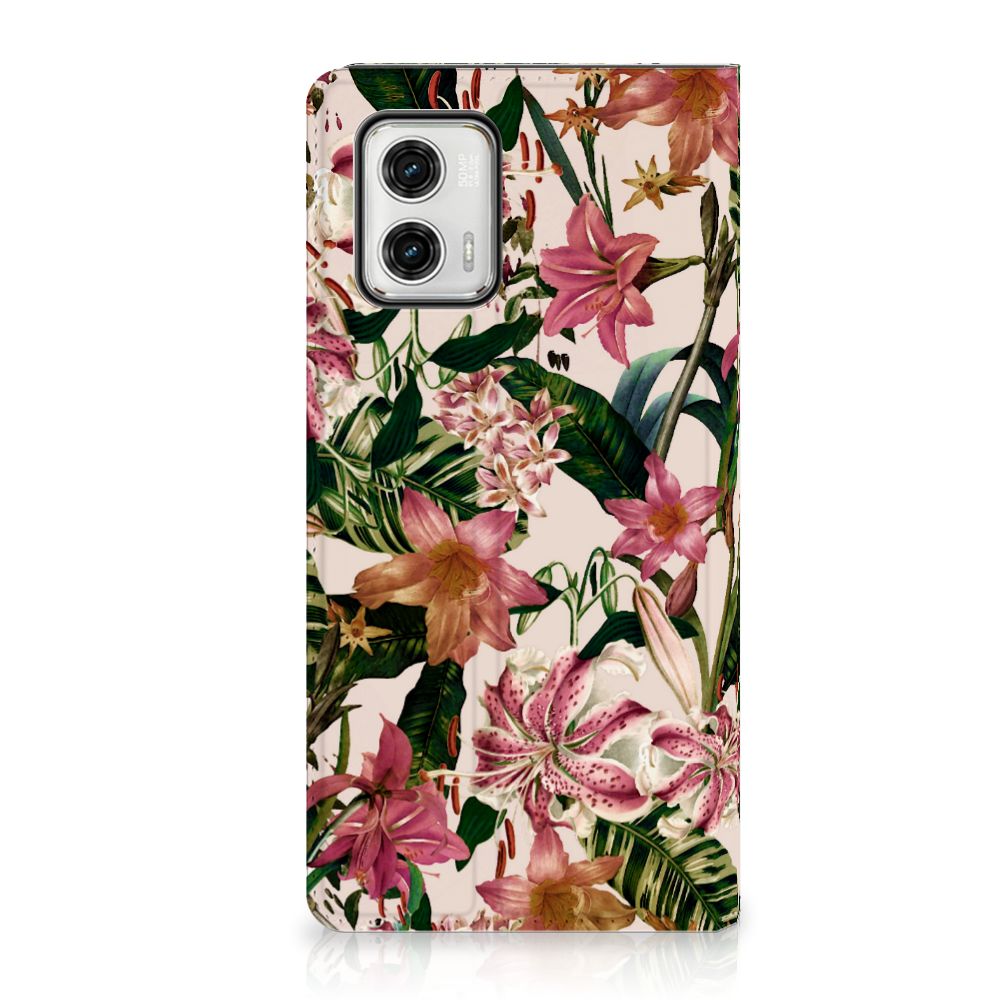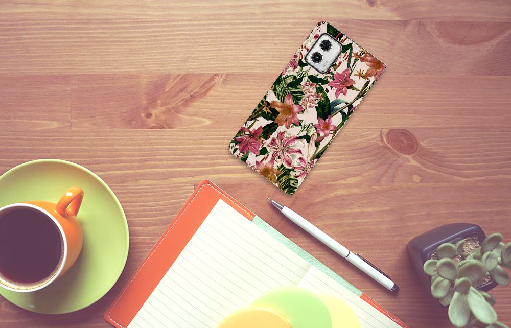 Dit Flowers design is een zegen voor de mens en zijn smartphone. De paarswitte bloemen en groene bladeren op deze Motorola Moto G73 Smart Cover geven jouw smartphone een zeer sierlijke uitstraling. Je krijgt er meteen een goed gevoel bij als je aan het appen, mailen of aan het bellen bent. Valt dan je telefoon op de grond, dan zal er dankzij de stand case met paarswitte bloemen en groene bladeren geen schade ontstaan. Onze stand cases met paarswitte bloemen en groene bladeren bieden de allerbeste bescherming en zijn heel praktisch, wat blijkt uit onder meer het vakje aan de binnenkant en de handige standaard waarmee je de smartphone rechtop op tafel neer kunt zetten. De paarswitte bloemen en groene bladeren komen op alle zijden van de case te staan. Op deze stand case van leer en TPU (houder aan de binnenkant) kun je in no time zelf foto’s van jouw favoriete bloemen zetten.