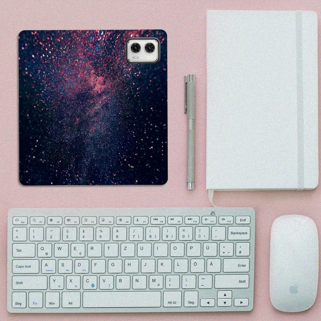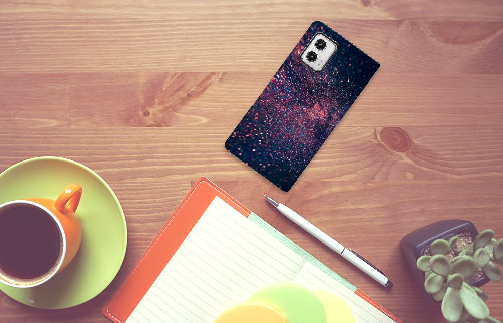 Je waant je in de zevende hemel met dit kunstzinnige, glitterachtige design hoesje met paarse en blauwe kleuren tegen een inktzwarte achtergrond. Het smartphone hoesje heeft ook een wat science fiction achtige allure. Met deze design Stars case zul je zeker opvallen. Als dit je bedoeling is, bestel dat snel dit waanzinnig mooie product voor je Motorola Moto G73. Het telefoonhoesje is van alle gemakken voorzien en combineert een hele fraaie uitstraling met maximaal comfort. Bovendien is het gemaakt van zeer stevig en flexibel materiaal. Het unieke design, door B2C Telecom ontworpen, staat op een Stand Case. Deze case beschermt jouw telefoon aan alle kanten en beschikt over een 1 opbergvakje en een speciale standaard. Het hoesje wordt afgesloten met een magneet aan de binnenzijde. De houder aan de binnenzijde is van TPU.