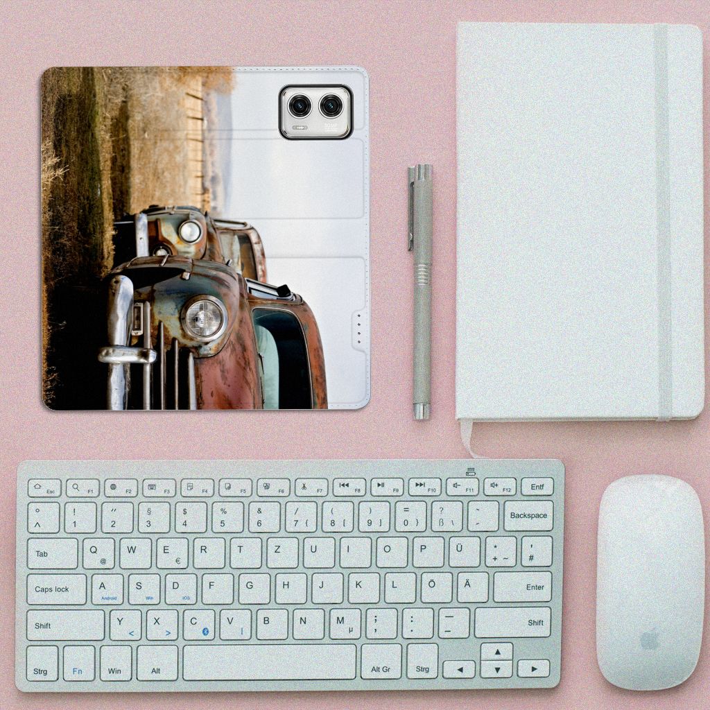 Autoliefhebbers met een voorkeur voor vintage zullen in hun nopjes zijn met dit design hoesje. We hebben een boekhoesje met print van Vintage Auto speciaal op maat gemaakt voor jouw smartphone. Door de achtergrond van dit hoesje krijgt de case met vintage auto’s echt een mooie retro look. Een Motorola Moto G73 Stand Case is een van onze meest populaire producten. Dit komt onder andere doordat ze jouw smartphone aan alle zijden beschermen. Verder is de case zeer praktisch. Wat denk je bijvoorbeeld van het vakje aan de binnenzijde en de magnetische sluiting. Verder heeft het hoesje een flexibele en stevige houder van TPU aan de binnenzijde. Zie je liever je eigen auto staan op de stand case? Dan raden we je aan zelf een stand case met foto’s van auto’s te ontwerpen op onze website.