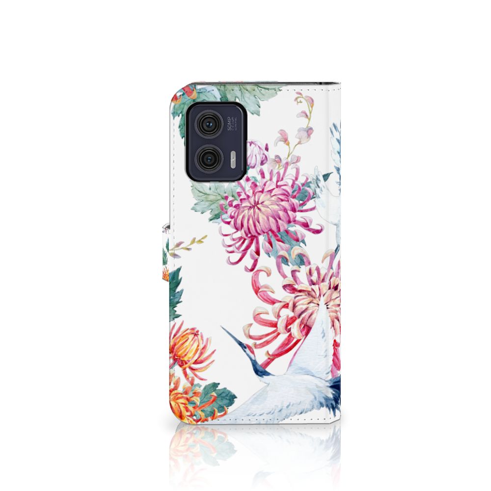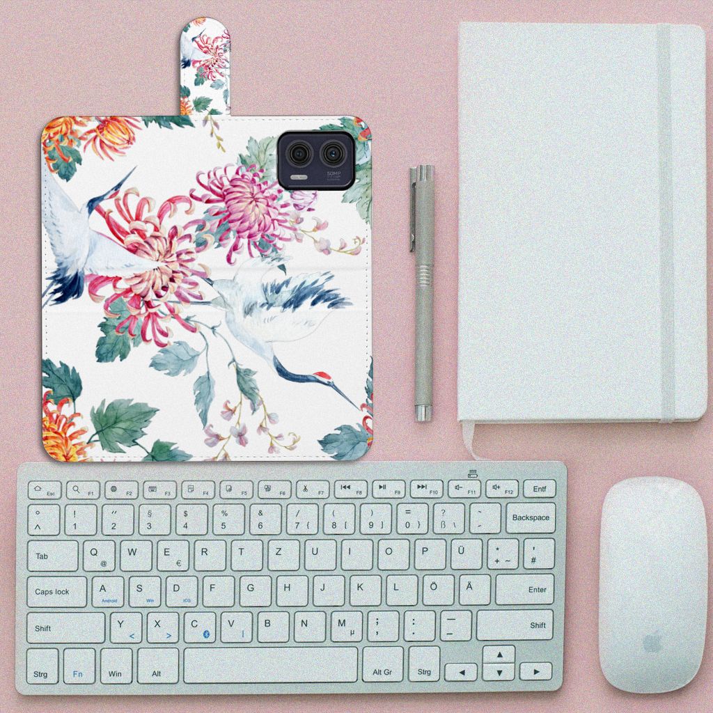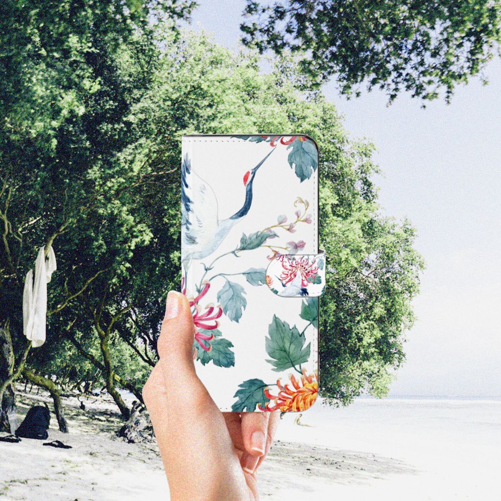 Motorola Moto G73 Telefoonhoesje sluit met magnetische lipje Bird Flowers