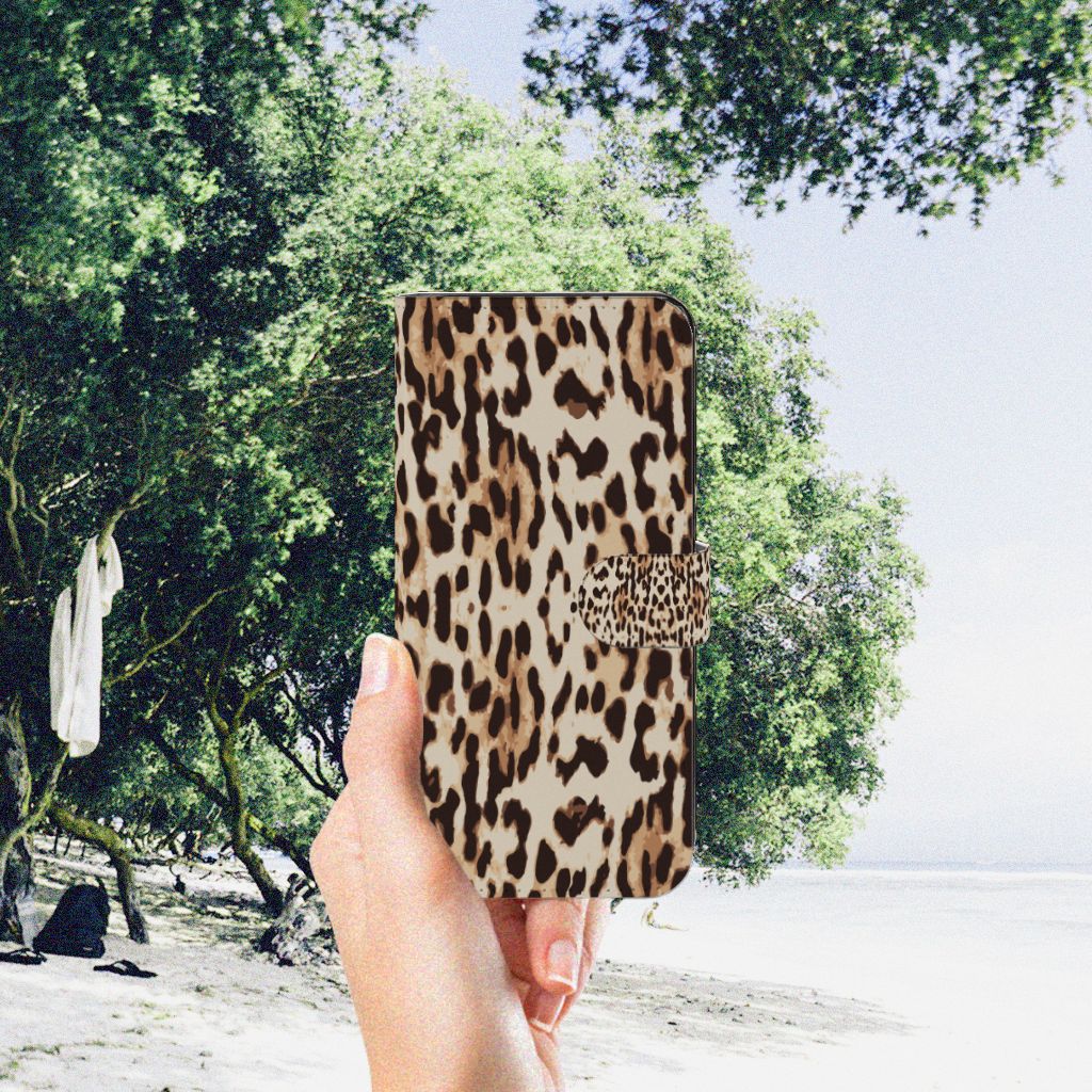 Motorola Moto G73 Telefoonhoesje met Pasjes en met magnetische sluitclip Leopard