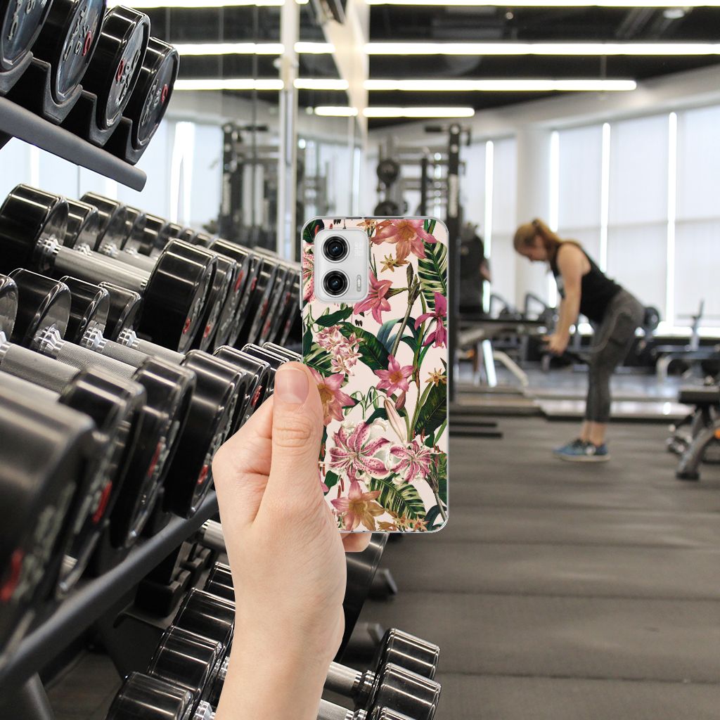 Dit Flowers design is een zegen voor de mens en zijn smartphone. De paarswitte bloemen en groene bladeren op deze Motorola Moto G73 TPU Case geven jouw smartphone een zeer sierlijke uitstraling. Je wordt er ook meteen vrolijker van als je aan het appen, mailen of aan het bellen bent. Valt dan je telefoon op de grond, dan zal er dankzij de tpu case met paarswitte bloemen en groene bladeren geen schade ontstaan. Helemaal niet als je er een screenprotector bij hebt gekocht. Onze tpu cases met paarswitte bloemen en groene bladeren zien er zeer prettig uit en zijn heel praktisch, getuige onder meer de opstaande randen en het flexibele materiaal. Alleen de achterkant van de tpu case wordt bedrukt met paarswitte bloemen en groene bladeren, de randen blijven transparant. Op deze tpu case kun je trouwens ook in no time zelf foto’s van jouw favoriete bloemen zetten.