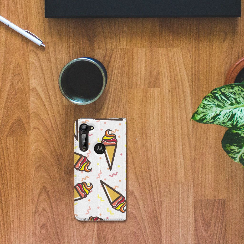 Een vrolijke Motorola Moto G8 Power Flip Style Cover met daarop verschillende ijsjes. Als je daar geen zomers gevoel meer van krijgt, weten wij het ook niet meer. De zomer en ijsjes zijn onlosmakelijk met elkaar verbonden. Tijdens een bezoekje aan het strand mag een lekker ijsje bijvoorbeeld niet ontbreken. Een design hoesje met lekkere Icecream print past daar natuurlijk ook ontzettend goed bij. Jouw telefoon is helemaal beschermd met een stand case met ijsjes design. De aankoop van deze case is een heerlijke investering, die zich gegarandeerd terugbetaalt. Alle zijden van dit hoesje worden bedrukt met ijsjes. De case heeft een speciale standaard en de houder aan de binnenzijde is van TPU. Onder alle weersomstandigheden zal deze case met opbergvakje perfect functioneren, ook in de zomer met een ijsje in je hand. Dit smaakvolle hoesje is zeer goedkoop te bestellen en wordt zeer snel bezorgd.