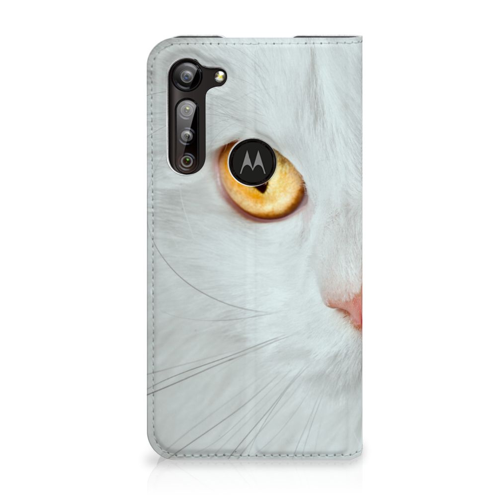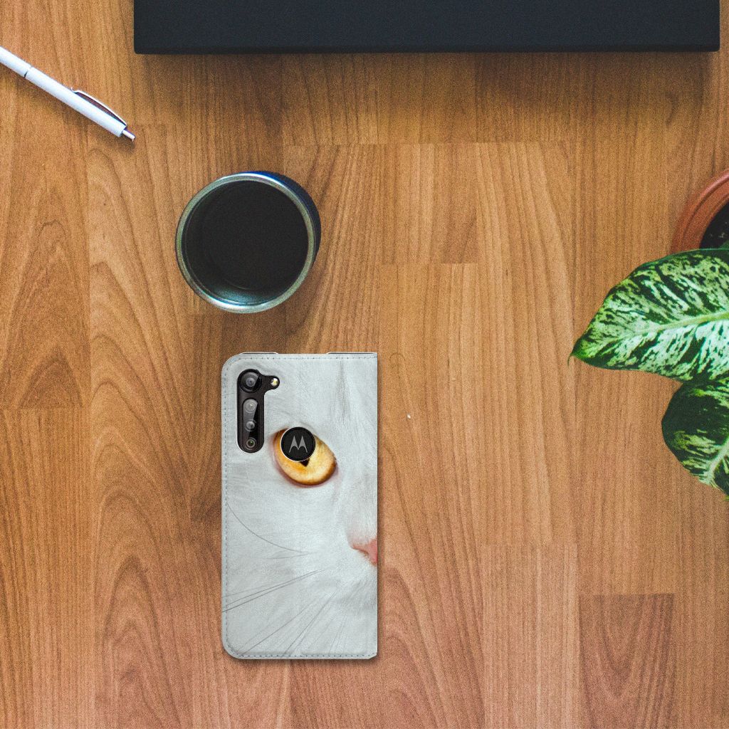 Witte katten zijn natuurlijk extra speciaal, vandaar we een exemplaar op een design hoesje hebben gezet. Een witte kat schijnt trouwens ook slechter te kunnen horen dan katten met een andere kleur. Deze witte kat staat op een zeer prominente wijze op een stand case. Deze stand case met witte kat ziet er geweldig uit en is voorzien van verschillende uitsparingen en een speciale standaard. Een Motorola Moto G8 Power Hoesje maken met witte kat beschermt jouw smartphone perfect. Alle zijden van de case zijn bedrukt. Jouw smartphone wordt erg duurzaam met dit design hoesje. Het TPU aan de binnenzijde is zeer flexibel en het pu-leer oogt chique. Verder heeft de case een houder voor bijvoorbeeld je rijbewijs aan de binnenkant.