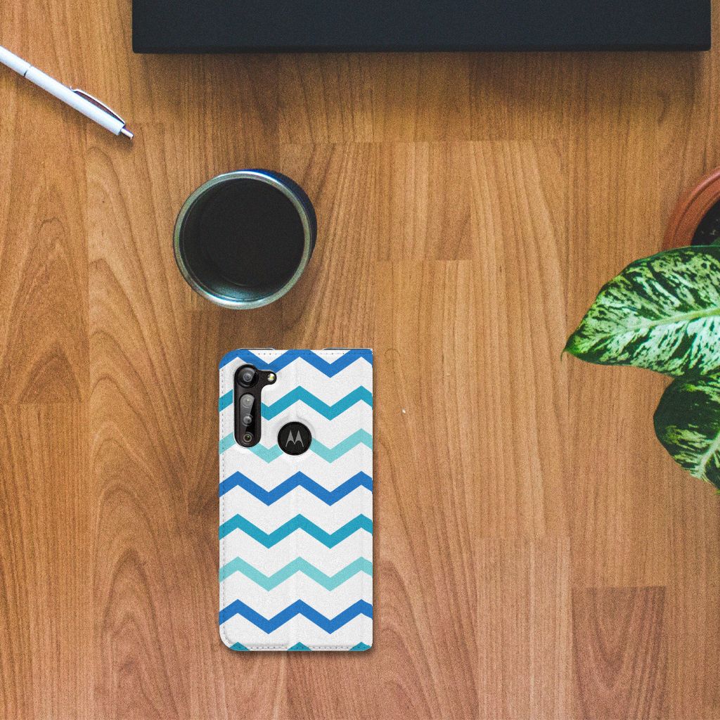 Dit zigzag blauwe design hoesje is speciaal ontworpen voor jou. We hebben bewust verschillende stijlen blauw gebruikt, zodat er voldoende sprake is van variatie. Dit blauwwitte Hoesje met Magneet ziet er super strak uit. Dat kan ook niet anders, als je weet dat onze zeer talentvolle designer er hoogstpersoonlijk voor verantwoordelijk is. Hij schudt wekelijks nieuwe designs uit zijn mouw en dit zigzag blauwe hoesje is een van zijn fraaiste creaties. Een heel dik design hoesje, al zeggen we het zelf. Valt dit blauwwitte design hoesje goed bij jou? Bestel het dan vandaag nog en je hebt het morgen in huis. Het design staat op een stand case. Deze case beschermt jouw Motorola Moto G8 Power aan alle kanten en beschikt over een 1 opbergvakje en een speciale standaard. Het hoesje wordt afgesloten met een magneet aan de binnenzijde. De houder aan de binnenzijde is van TPU. Alle zijden van de stand case worden bedrukt.