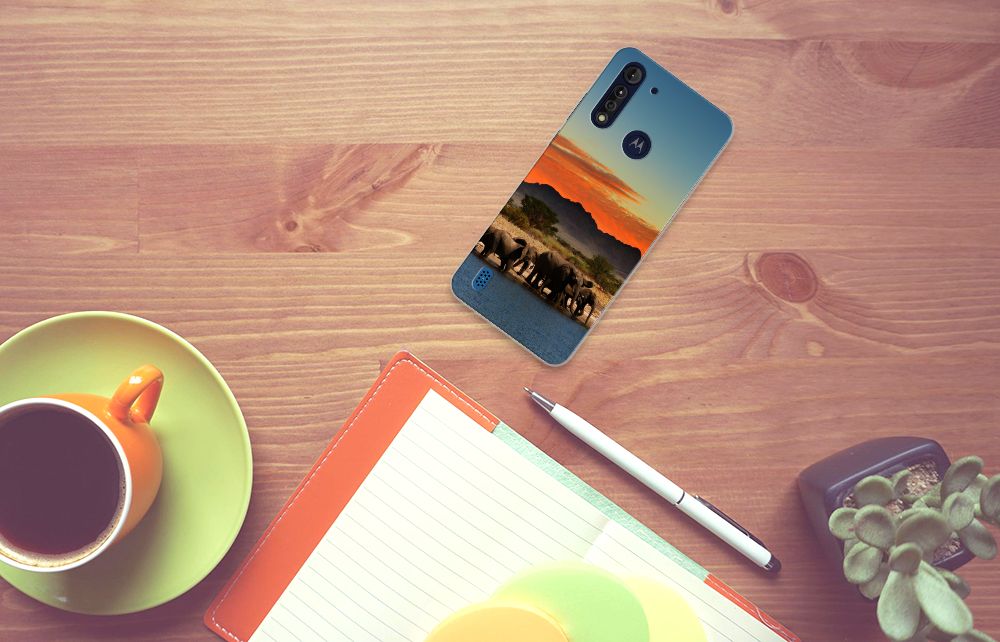 Dit hoesje is zo sterk als een olifant. Dat is goed nieuws, want jouw telefoon heeft een zeer goede bescherming nodig. Dat krijg je met dit design hoesje met print van Olifanten. De Afrikaanse olifant, het allergrootste landdier ter wereld, heeft waarschijnlijk het meest te lijden gehad van stroperij om het ivoor. Deze dieren verdienen dus een goede bescherming, net als jouw smartphone. Met een Motorola Moto G8 Power Lite TPU Hoesje met olifant erop krijg je dit zeker voor elkaar. De tpu case beschermt vooral de achterkant en zijkanten van je telefoon en is gemaakt van onbreekbaar materiaal. De sterke olifant komt zeer goed tot zijn recht op deze case, die zeer flexibel is. Alleen de bovenzijde van de case wordt bedrukt met olifanten, de zijkanten blijven transparant.