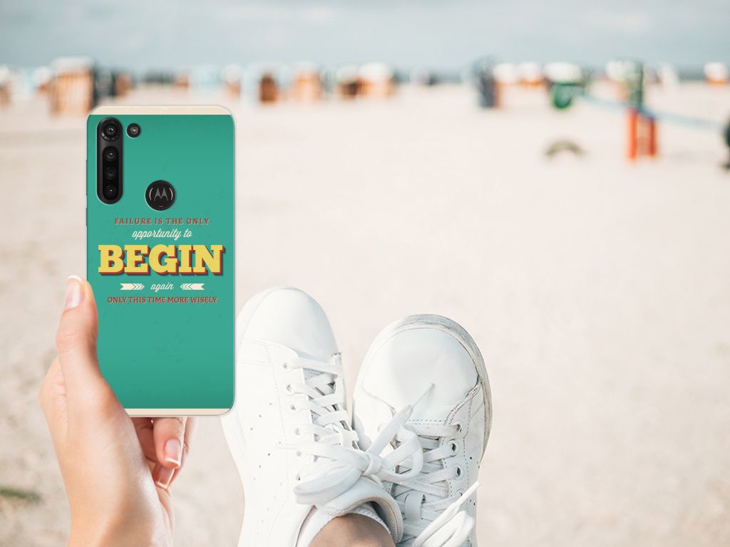 Ben je op zoek naar een uniek telefoonhoesje voor je Motorola Moto G8 Power? Dan ben je bij B2C Telecom aan het juiste adres! Speciaal voor jou hebben we dit prachtige Quote Begin design in onze collectie hoesjes opgenomen. Het design wordt bedrukt op een Siliconen hoesje met naam en is gemaakt van flexibel rubber. Het design wordt alleen aan de bovenkant van het hoesje bedrukt en de randen blijven transparant. Aan de zijkanten zijn uitsparingen gemaakt waardoor je met gemak alle knoppen en poorten kunt bedienen. Wij adviseren om dit hoesje in combinatie met een screenprotector te gebruiken voor een langere levensduur van je telefoon. Wil je dit design hoesje nog iets extra's geven? Voeg dan gratis je naam of een quote toe! Is dit design hoesje toch niet helemaal wat je zocht? Ontwerp dan zelf een hoesje in ons ontwerpprogramma.