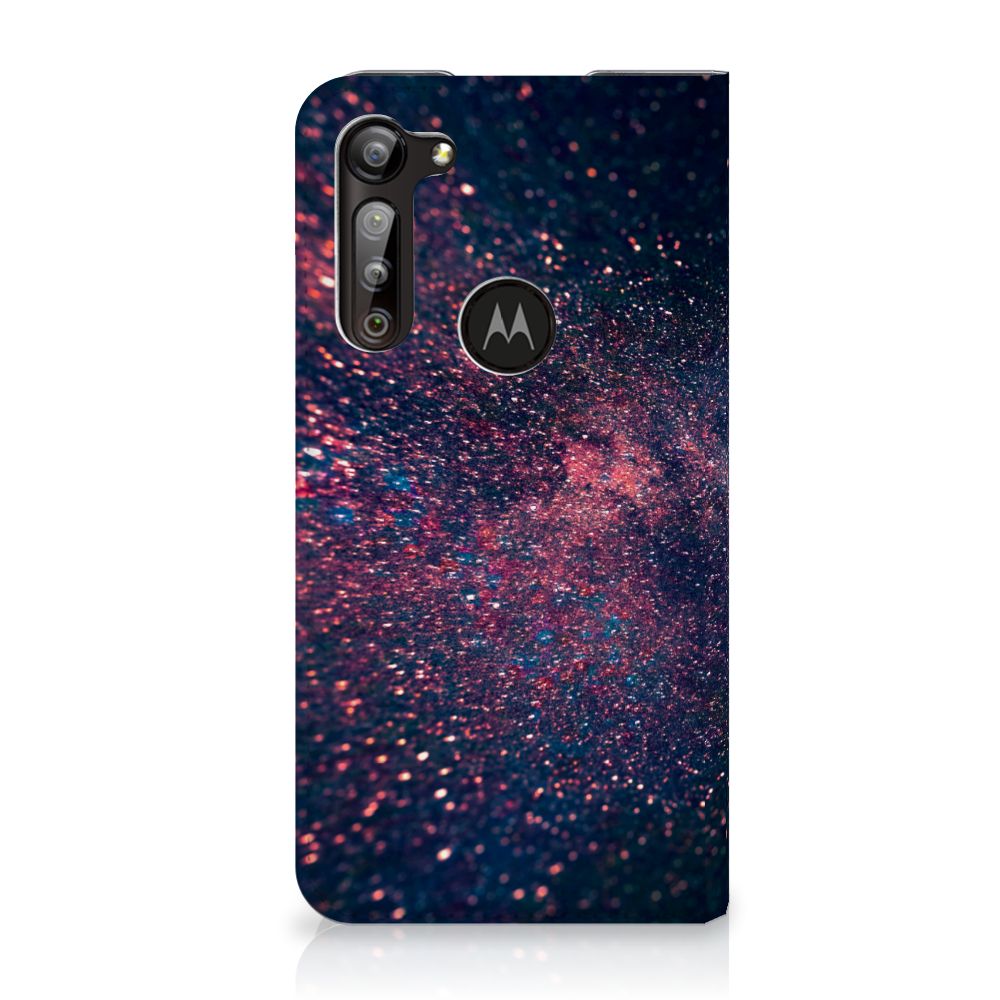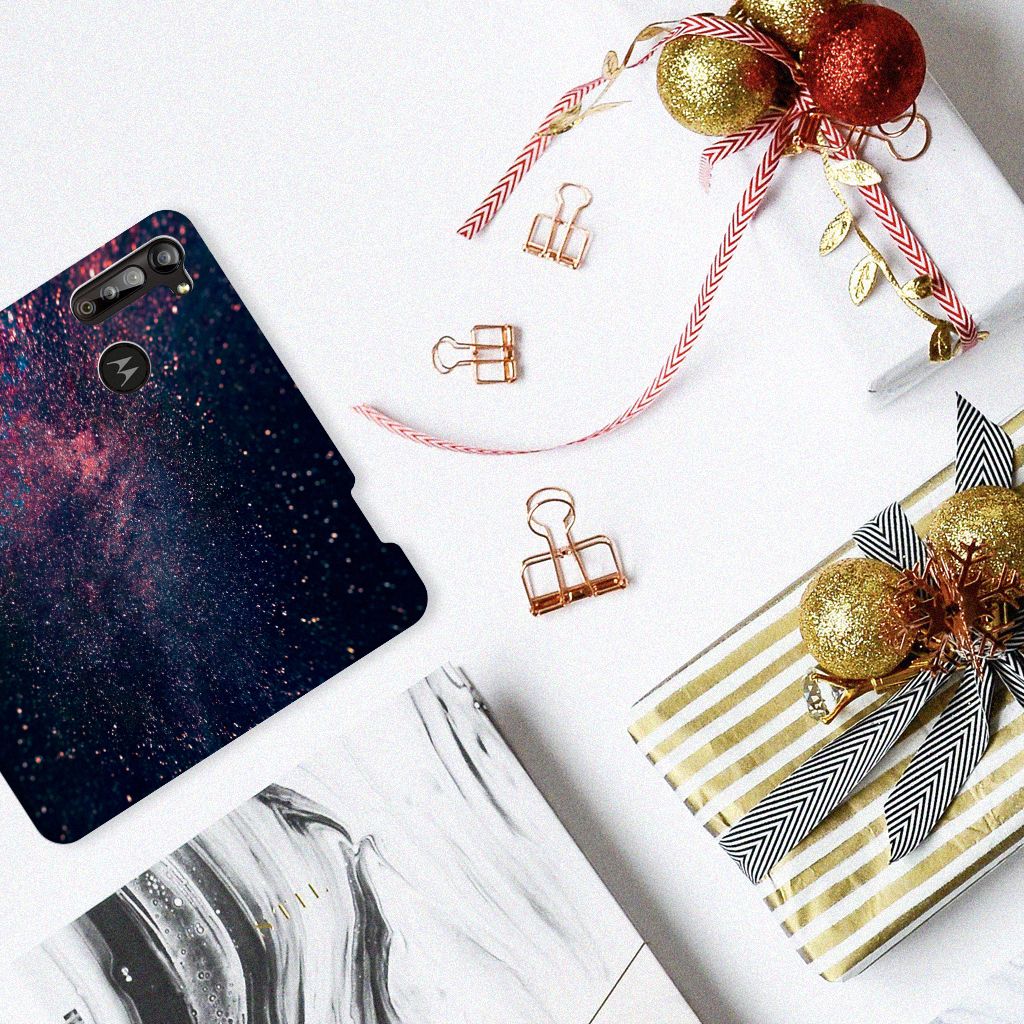 Je waant je in de zevende hemel met dit kunstzinnige, glitterachtige design hoesje met paarse en blauwe kleuren tegen een inktzwarte achtergrond. Het smartphone hoesje heeft ook een wat science fiction achtige allure. Met deze design Stars case zul je zeker opvallen. Als dit je bedoeling is, bestel dat snel dit waanzinnig mooie product voor je Motorola Moto G8 Power. Het telefoonhoesje is van alle gemakken voorzien en combineert een hele fraaie uitstraling met maximaal comfort. Bovendien is het gemaakt van zeer stevig en flexibel materiaal. Het unieke design, door B2C Telecom ontworpen, staat op een Stand Case. Deze case beschermt jouw telefoon aan alle kanten en beschikt over een 1 opbergvakje en een speciale standaard. Het hoesje wordt afgesloten met een magneet aan de binnenzijde. De houder aan de binnenzijde is van TPU.