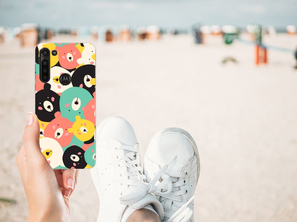Op dit hoesje vind je een bereschattig ontwerp! Vergeef ons de woordgrap, maar hoe moeten we dit lieve ontwerp anders omschrijven? Op dit knuffelige ontwerp zie je leuke, getekende beertjes in vrolijke kleuren als geel, blauw en roze. Dankzij de contrasterende witte en zwarte beertjes vallen de felle kleurtjes nog meer op. Al met al is dit Telefoonhoesje met Naam voor de Motorola Moto G8 Power een perfect hoesje voor de knuffelberen onder ons. TPU is flexibel en onbreekbaar. Zo is je telefoon aan de achterkant en de randen heel goed beschermd. De case met het Bears-design is aan de bovenkant bedrukt, de randen blijven transparant. Het TPU-hoesje is perfect te combineren met een screenprotector, zo zijn je telefoon en je beeldscherm perfect beschermd.