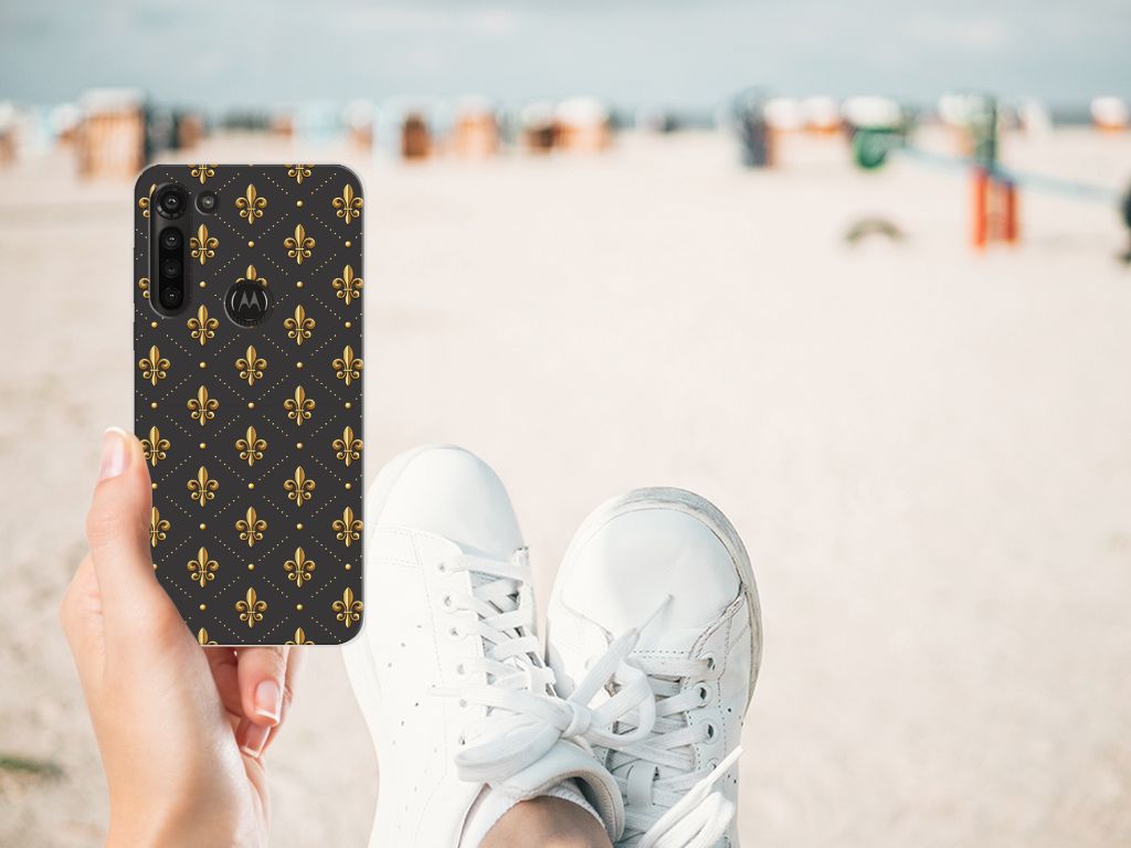 Hét symbool van het Franse koningshuis, de fleur-de-lis (ook fleur-de-lys of Franse lelie), mag natuurlijk niet ontbreken in onze collectie design hoesjes. De naam betekent letterlijk lelie-bloem. Deze Franse Lelie kunnen we op verschillende soorten cases printen, zoals een zeer praktische en onderscheidende tpu case. Een Motorola Moto G8 Power TPU bumper met Franse Lelie ziet er niet alleen ontzettend chique uit, het is dankzij onder meer het zeer flexibele materiaal zeer praktisch. Het is niet helemaal duidelijk welke bloem model heeft gestaan voor het Franse symbool. Wel is duidelijk dat de Franse lelie volledig tot wasdom komt op deze handige tpu case. We bedrukken de tpu case op het moment dat jij deze bestelt. Op de bovenzijde komt de Franse lelie te staan, de zijkanten blijven transparant.