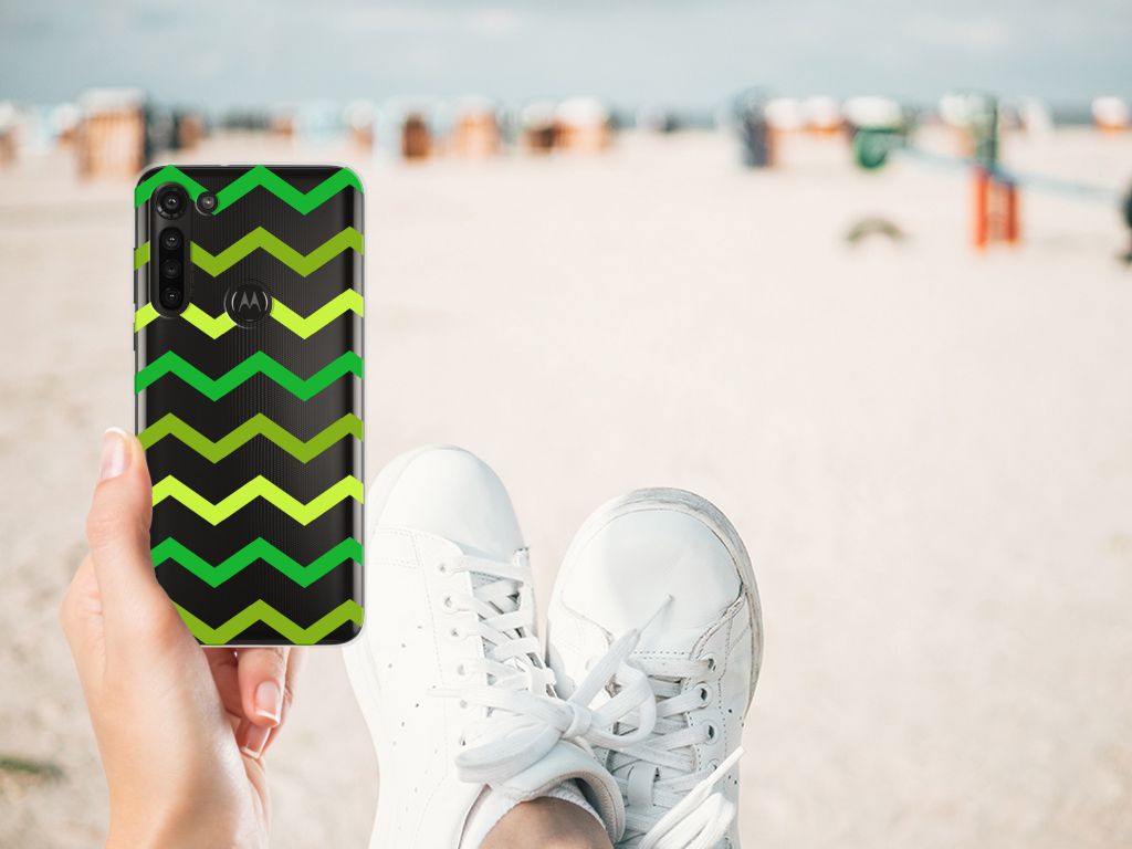 Dit zigzag groene design hoesje is speciaal ontworpen voor jou. We hebben bewust verschillende stijlen groen gebruikt, zodat er voldoende sprake is van variatie. Dit groene hoesje ziet er super strak uit. Dat kan ook niet anders als je weet dat onze designer zijn creativiteit heeft gebruikt. Hij schudt voortdurend nieuwe designs uit zijn mouw en dit zigzag groene hoesje is een van zijn fraaiste creaties. Een heel tof Motorola Moto G8 Power TPU bumper, al zeggen we het zelf. Valt dit Zigzag Groen design hoesje goed bij jou? Bestel het dan vandaag nog en je hebt het morgen in huis. Het design staat op een TPU case. Dit hoesje wordt alleen aan de bovenkant bedrukt en is zeer flexibel. De randen van het hoesje blijven transparant en worden niet bedrukt. Met dit hoesje past jouw telefoon altijd in je broekzak.