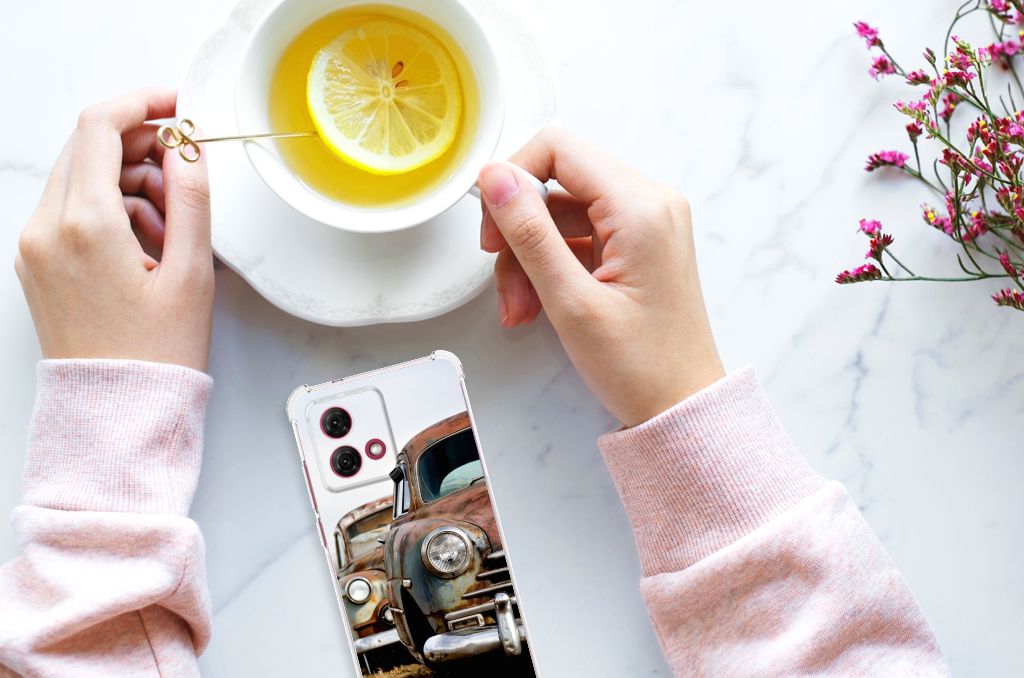 Ben je op zoek naar een uniek telefoonhoesje voor je Motorola Moto G84? Dan ben je bij B2C Telecom aan het juiste adres! Speciaal voor jou hebben we dit prachtige Vintage Auto design in onze collectie hoesjes opgenomen. Het design wordt bedrukt op een Anti-shock Hoesje met foto en is gemaakt van flexibel rubber. Het hoesje is perfect voor de actieve smartphonegebruiker door de opstaande randen/hoeken. Denk aan mensen die veel sporten, reizen of wandelen en net iets meer zekerheid willen als het op hun geliefde telefoon aankomt. Het design wordt alleen aan de bovenkant van het hoesje bedrukt en de randen blijven transparant. Aan de zijkanten zijn uitsparingen gemaakt waardoor je met gemak alle knoppen en poorten kunt bedienen. Wij adviseren om dit hoesje in combinatie met een screenprotector te gebruiken voor een langere levensduur van je telefoon. Wil je dit hoesje nog iets extra's geven? Voeg dan gratis je naam of een quote toe! Is dit design hoesje toch niet helemaal wat je zocht? Ontwerp dan zelf een hoesje in ons ontwerpprogramma.