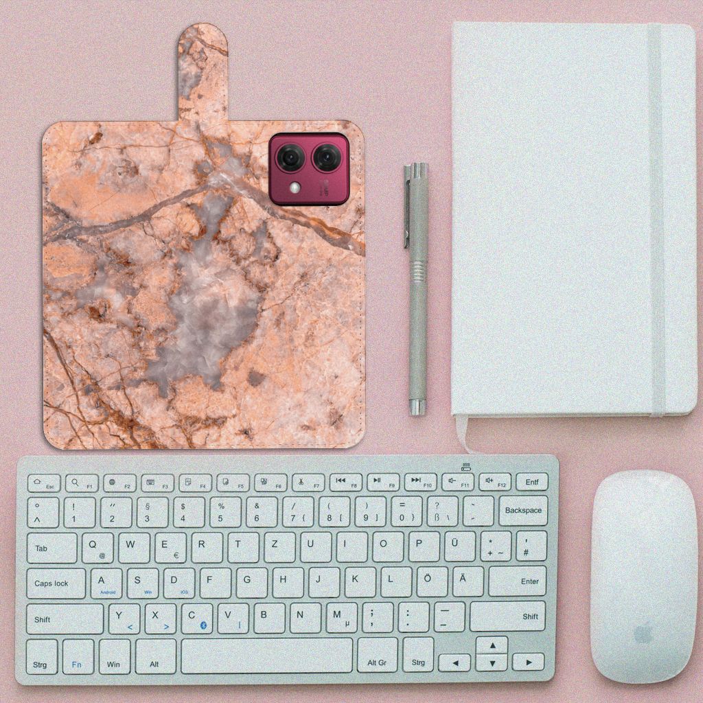 Motorola Moto G84 Bookcase met pasjes Marmer Oranje