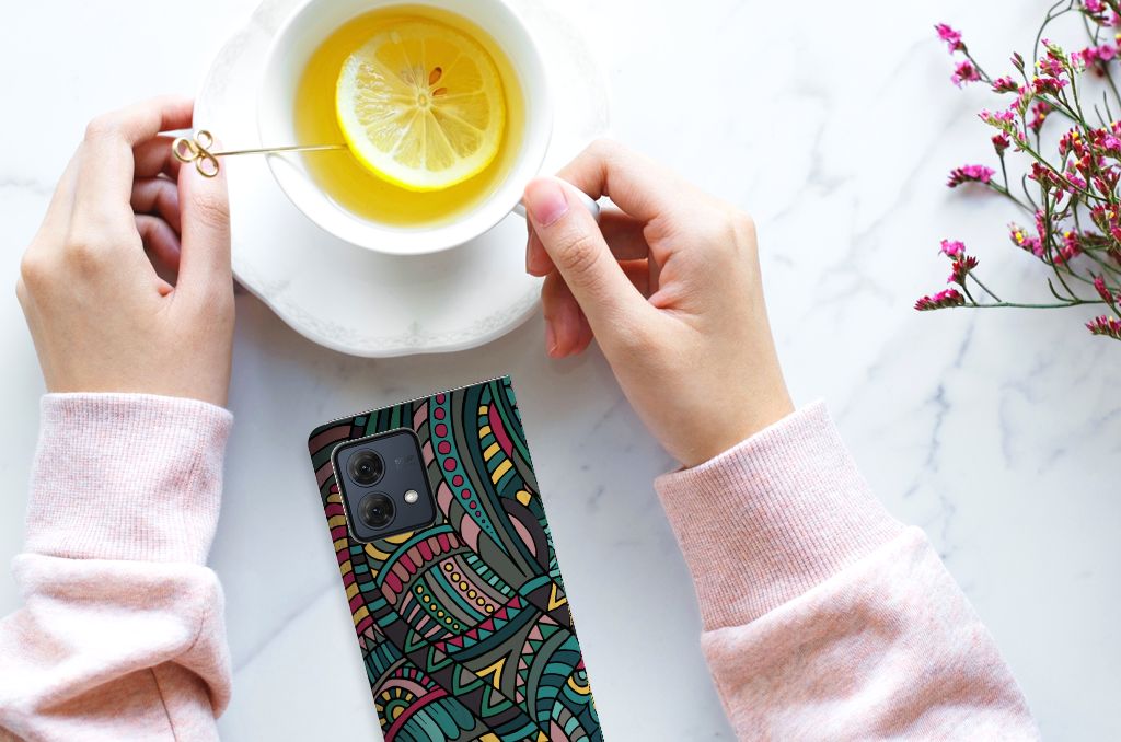 Voor de mensen die een beetje artistiek zijn, kunnen we een onderscheidende Motorola Moto G84 Hoesje met Magneet bedrukken met kleuren in een soort retro stijl. Je krijgt bijna een beetje een nostalgisch gevoel bij dit kunstzinnige design hoesje. De opdruk Aztec komt op de volledige stand case te staan. Dit leuke hoesje in verschillende kleuren gaat nooit verloren en is net zo duurzaam als het gave patroon. De print wordt in ons eigen magazijn bedrukt. De case heeft alle nodige uitsparingen, zodat je alle knoppen en poorten simpel kunt bedienen. Het smartphonehoesje beschermt jouw telefoon aan alle zijden en heeft een houder voor een pasje en een standaard. De houder aan de binnenzijde is van TPU. Met dit leuke hoesje in opvallende kleuren oogt jouw smartphone zeer modern maar grijp je toch een beetje terug naar het verleden.