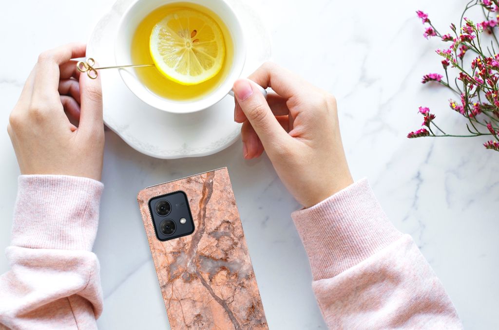 Dit design hoesje met Marmer Oranje is zeer geschikt voor jouw kostbare telefoon. Vanwege zijn prachtige lichtval en vastheid is marmer een zeer gewild bouwmateriaal. Wij kunnen inmiddels concluderen dat dit hoesje met oranje marmer ook zeer gewild is. Beloon jezelf en je telefoon met dit hele mooie Motorola Moto G84 Standcase. Naast het oranje marmer zijn er de diverse marmersoorten in een ruim kleurenpallet te krijgen. Deze stand case met marmer in oranje wordt bedrukt op alle zijden. De case beschikt over een vakje voor een pasje en toebehoren en een magnetische sluiting aan de binnenzijde. Verder heeft de case in oranje marmer een houder van TPU. Wij hebben onze designer veel vrijheid gegeven met het ontwerpen dit mooie hoesje. Het resultaat zie je terug in deze stand case met oranje marmer, dat de ideale bescherming is voor jouw smartphone. Des te mooi dat wij voor variatie hebben gekozen door een hoesje met oranje marmer aan de bieden.