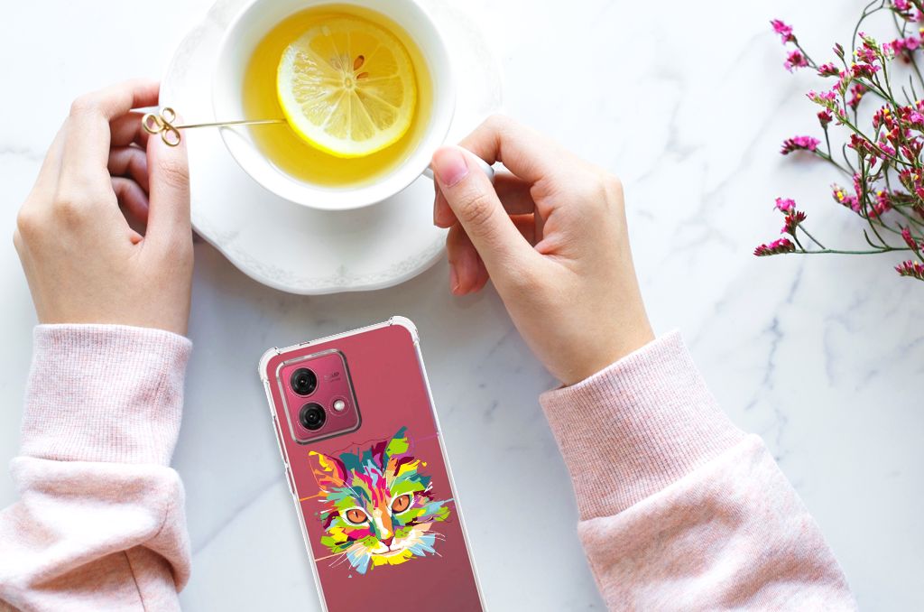 Ben je op zoek naar een uniek telefoonhoesje voor je Motorola Moto G84? Dan ben je bij B2C Telecom aan het juiste adres! Speciaal voor jou hebben we dit prachtige Cat Color design in onze collectie hoesjes opgenomen. Het design wordt bedrukt op een Stevig Bumper Hoesje en is gemaakt van flexibel rubber. Het hoesje is perfect voor de actieve smartphonegebruiker door de opstaande randen/hoeken. Denk aan mensen die veel sporten, reizen of wandelen en net iets meer zekerheid willen als het op hun geliefde telefoon aankomt. Het design wordt alleen aan de bovenkant van het hoesje bedrukt en de randen blijven transparant. Aan de zijkanten zijn uitsparingen gemaakt waardoor je met gemak alle knoppen en poorten kunt bedienen. Wij adviseren om dit hoesje in combinatie met een screenprotector te gebruiken voor een langere levensduur van je telefoon. Wil je dit hoesje nog iets extra's geven? Voeg dan gratis je naam of een quote toe! Is dit design hoesje toch niet helemaal wat je zocht? Ontwerp dan zelf een hoesje in ons ontwerpprogramma.