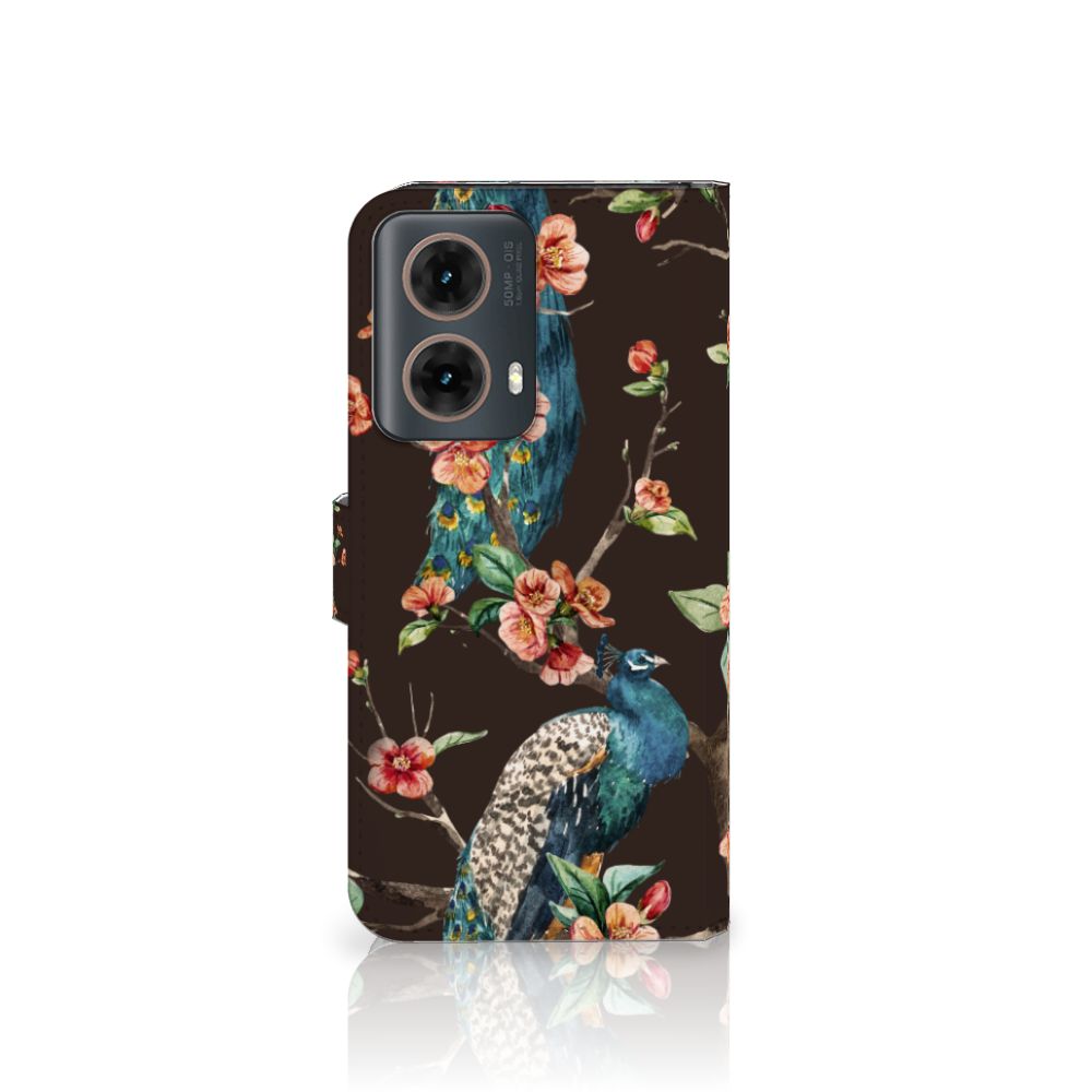 Motorola Moto G85 Telefoonhoesje sluit met magnetisch lipje Pauw | Bloemen