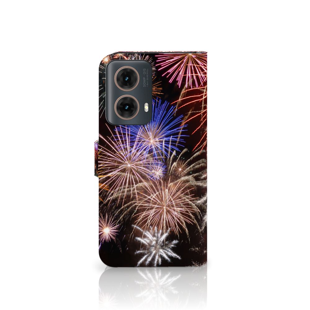 Dit Motorola Moto G85 Wallet Case met Pasjes levert gegarandeerd Vuurwerk op. Kijk alleen al eens naar de print van siervuurwerk, in zeer veel verschillende kleuren. Als je dit hoesje ziet kun je bijna niet geloven dat sommige gemeenten in Nederland overwegen om vuurwerk te verbieden. Er gebeuren weliswaar ongelukken mee, maar zoiets schitterends als op dit boekhoesje met vuurwerk wil je toch gewoon niet missen. Bovendien beschermt dit hoesje jouw smartphone ook nog eens aan alle kanten. Alle zijden van dit hoesje worden bedrukt. De case heeft een lipje aan de buitenzijde voor het afsluiten van de telefoon en de houder aan de binnenzijde is van TPU. Onder alle omstandigheden zal deze case met verschillende opbergvakjes perfect functioneren, ook als je met nieuwjaar vuurwerk aan het afsteken bent. Zorg dan overigens wel dat je zelf ook voldoende afgeschermd bent van het vuurwerk.