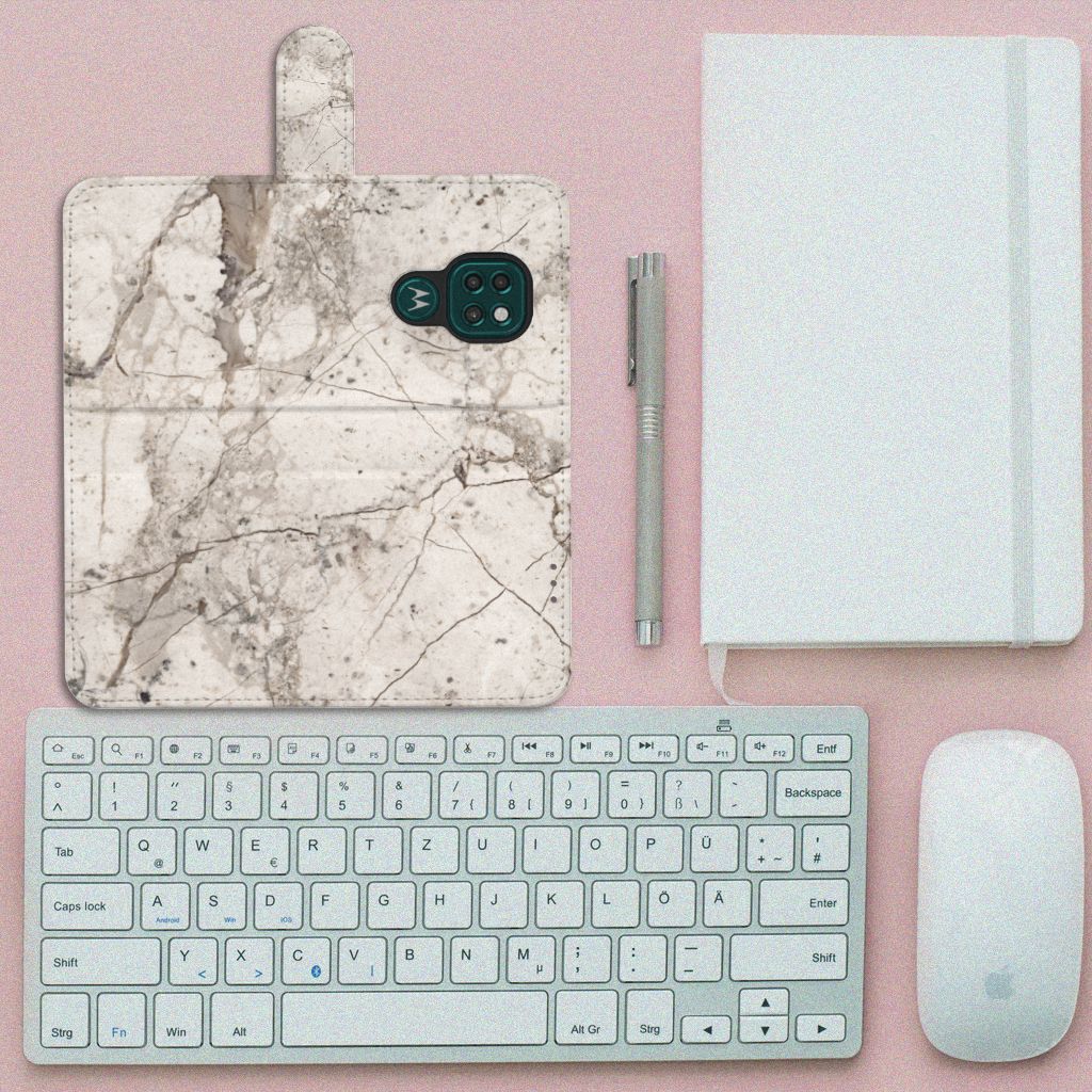 Motorola Moto G9 Play | E7 Plus Bookcase met pasjes Marmer Beige