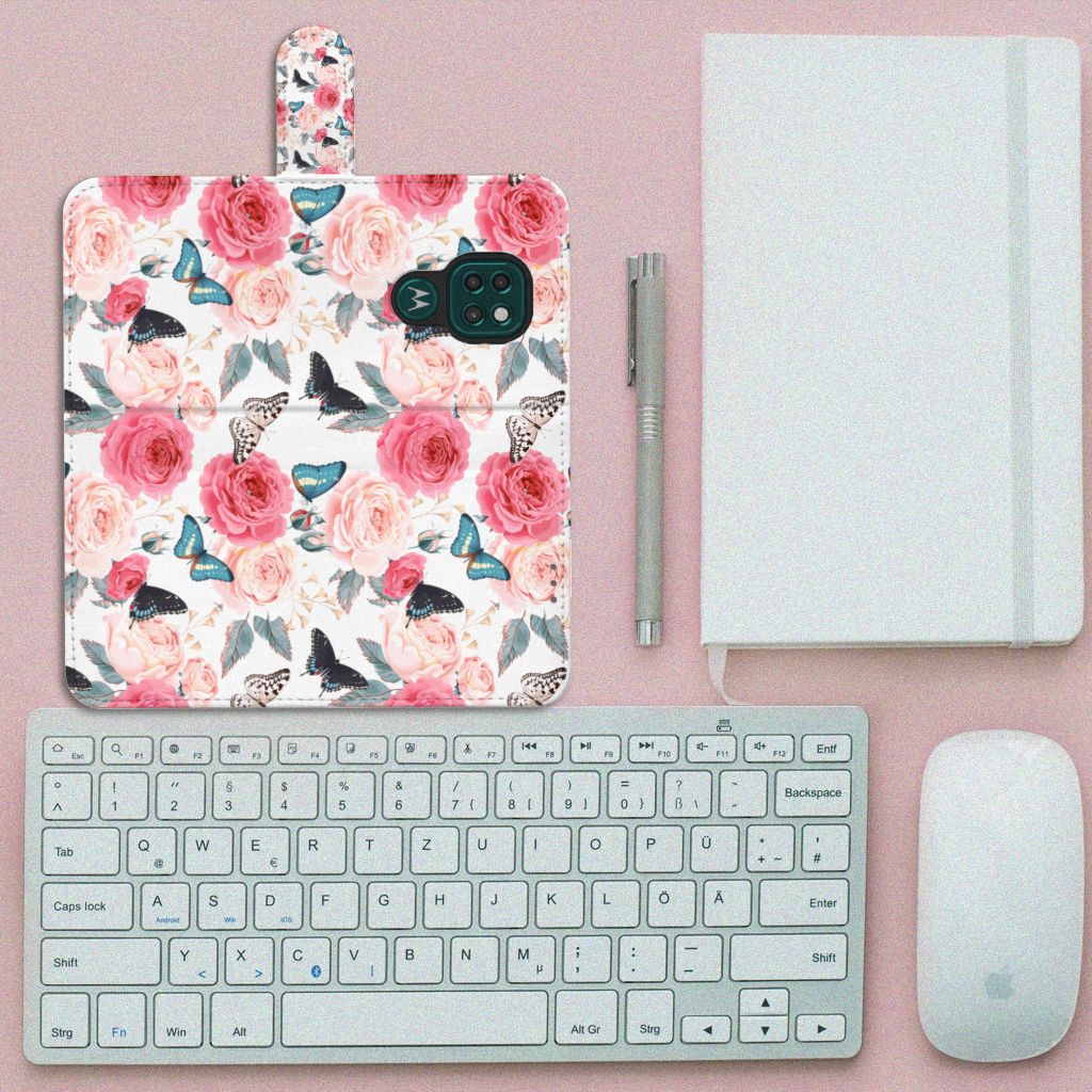 Motorola Moto G9 Play | E7 Plus Hoesje gemaakt van TPU en kunstleer Butterfly Roses