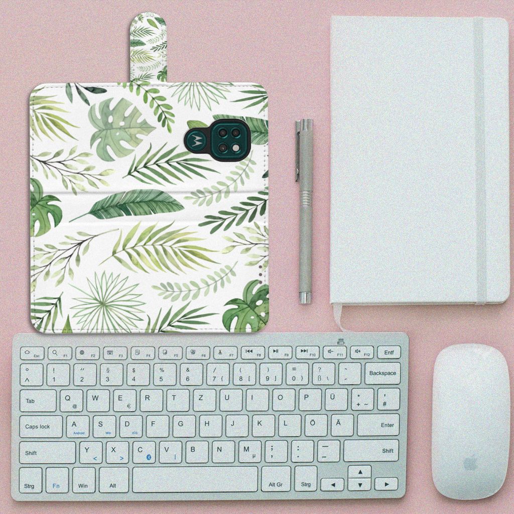 Motorola Moto G9 Play | E7 Plus Hoesje met ruimte voor pasjes Leaves