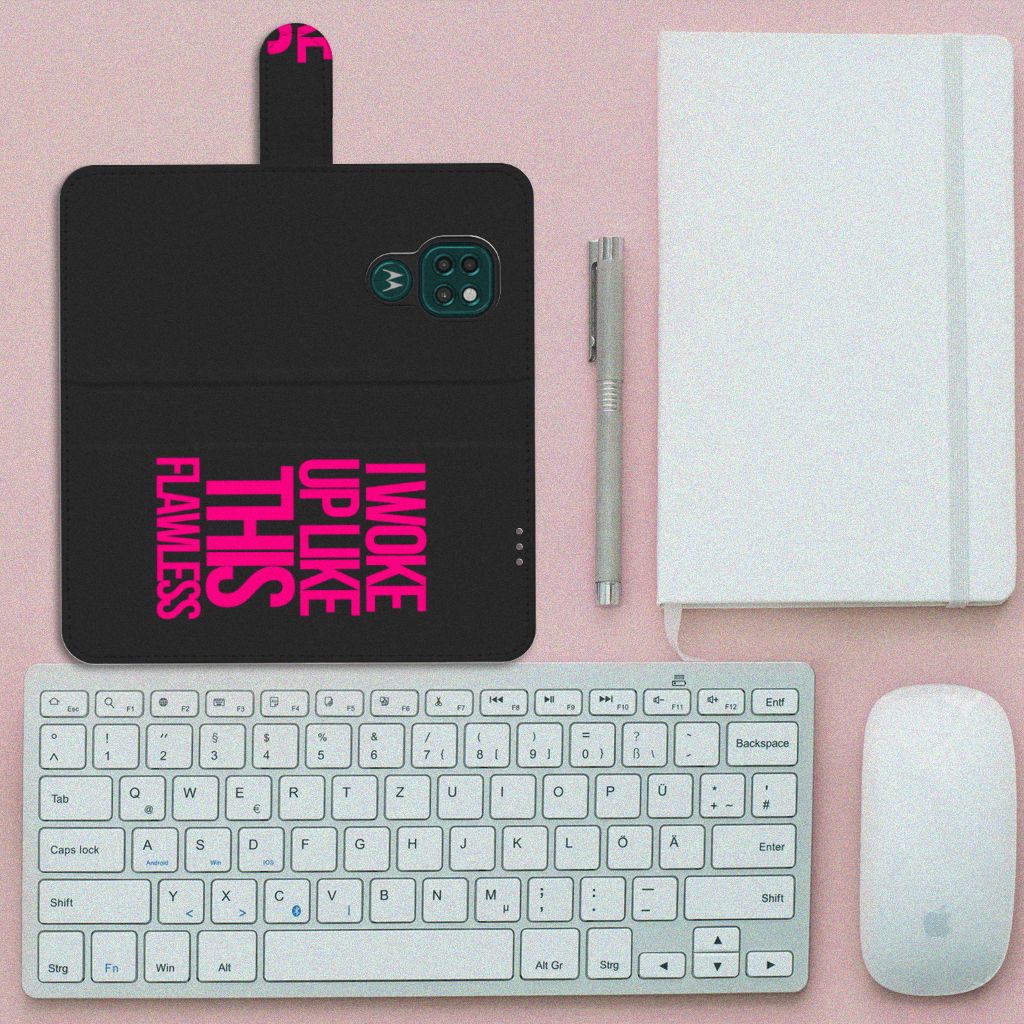 Met dit zwarte Motorola Moto G9 Play | E7 Plus Hoesje met naam met paarse tekst heb je een geweldige bescherming van je smartphone in handen. Dit zwarte hoesje met Woke Up tekst is een must voor jouw smartphone. Met dit design hoesje tekst val je ook zeker op. Je weet ook zeker dat het hoesje exclusief is. Het design is gemaakt door B2C Telecom. Het hoesje heeft verschillende vakjes en is aan alle zijden bedrukt. Ook het lipje aan de buitenkant kan worden bedrukt. De houder is van TPU, de buitenzijde van PU-leer. We willen je er ook op wijzen dat je zelf een hoesje kunt ontwerpen, met eigen beelden en teksten. Met onze Phone Case Designer kun je zelfs opvallende effecten, patronen en clip arts aan het ontwerp toevoegen.