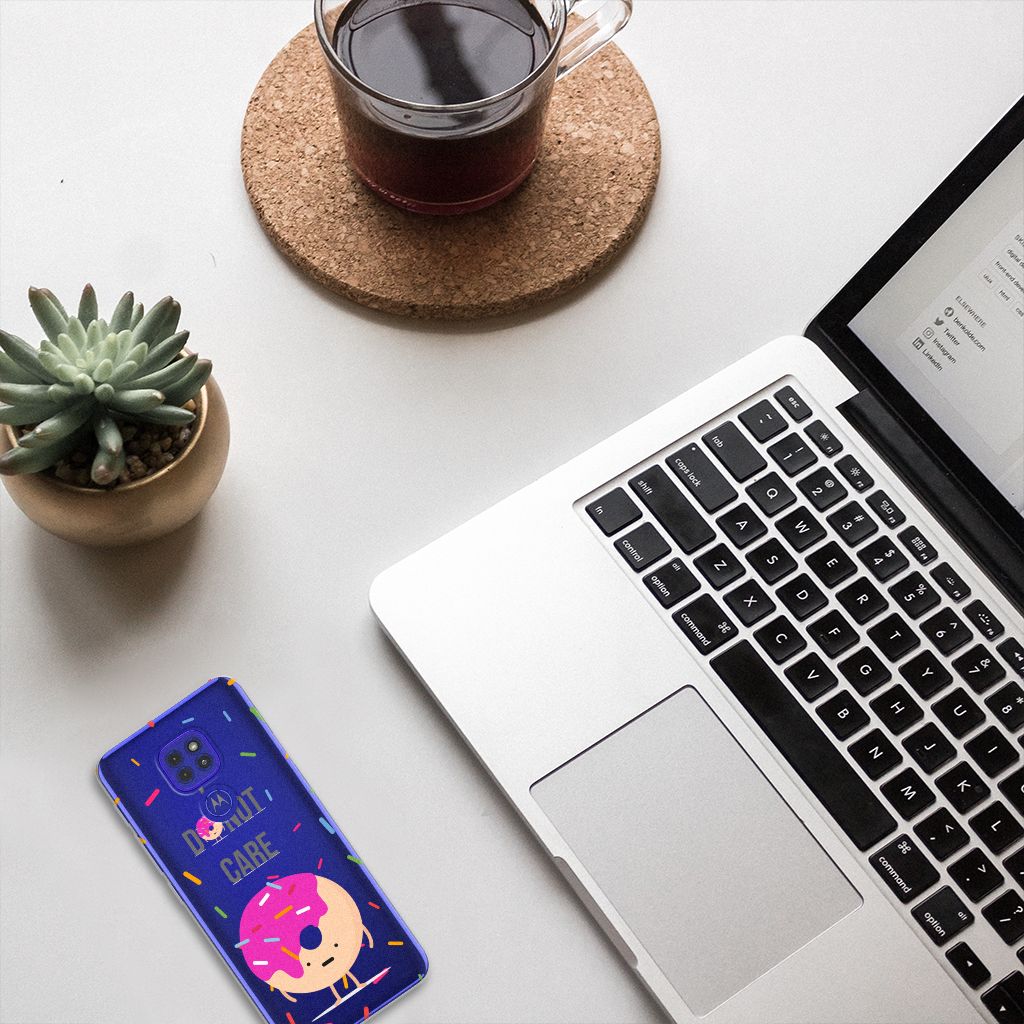 De cartoon met Donut op dit design hoesje geeft jouw smartphone een grappige en vrolijke uitstraling. De Motorola Moto G9 Play | E7 Plus Siliconen Case zorgt ervoor dat je je schouders op zult halen als je telefoon een keer op de grond valt. Omdat er geen schade zal optreden kun jij je weg weer heel makkelijk vervolgen. De grappige Donut Care tpu case is nergens anders te krijgen. Het design is namelijk van de hand van onze eigen ontwerper. Daarnaast zal de case jouw smartphone goed beschermen. Een Donut Care tpu case is een zeer flexibel hoesje. Dit komt onder andere door het elastische en onbreekbare materiaal. Verder is de case zeer praktisch. Wat denk je bijvoorbeeld van de opstaande randen aan de voorkant. Verder beschikt de case ook nog eens over alle noodzakelijke uitsparingen. Ook kun je zelf je eigen unieke hoesje ontwerpen, met eigen cartoons, foto’s en teksten. Een Donut Care tpu case wordt alleen aan de bovenkant bedrukt. De randen blijven volledig doorzichtig.