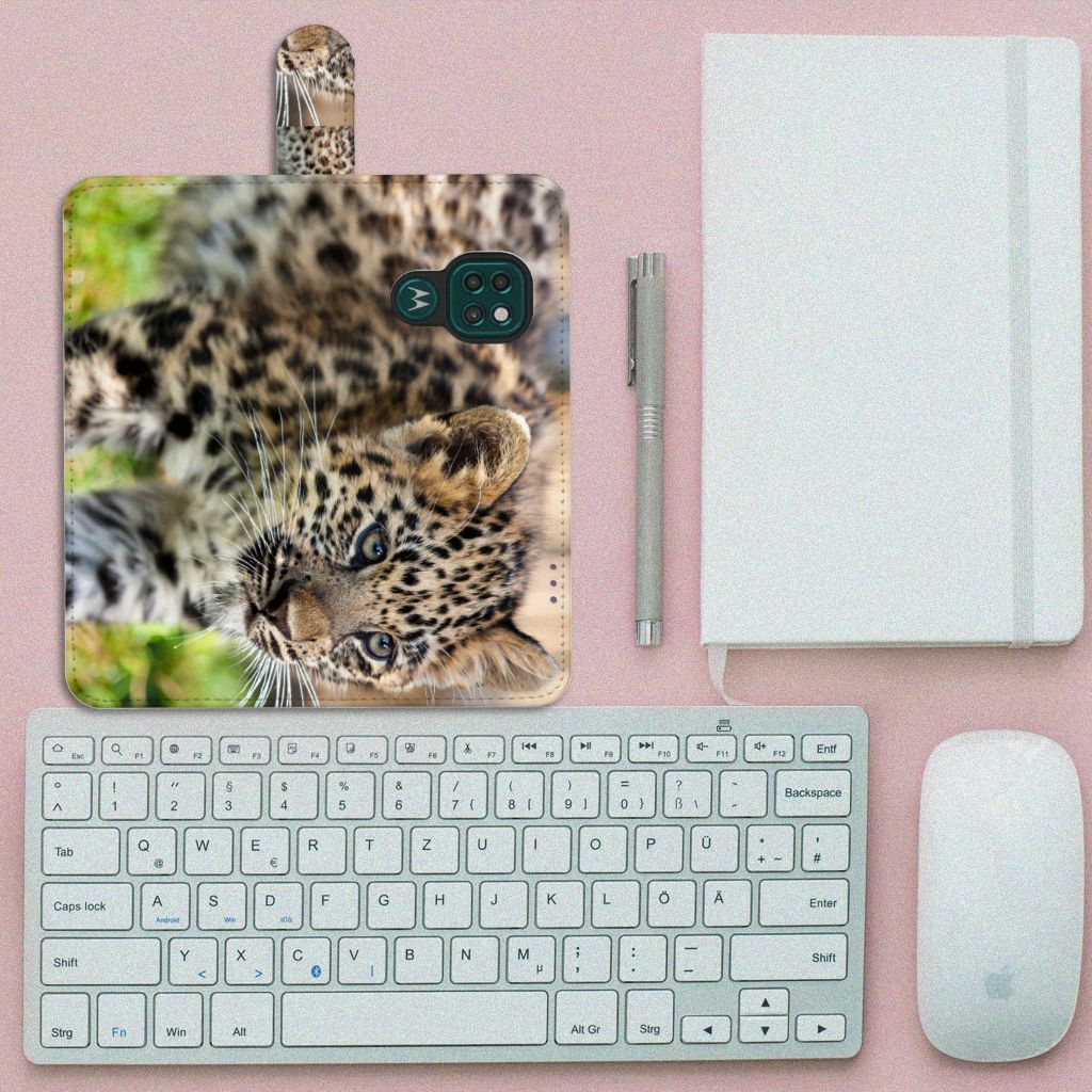 Motorola Moto G9 Play | E7 Plus Telefoonhoesje met magneetsluiting Baby Luipaard