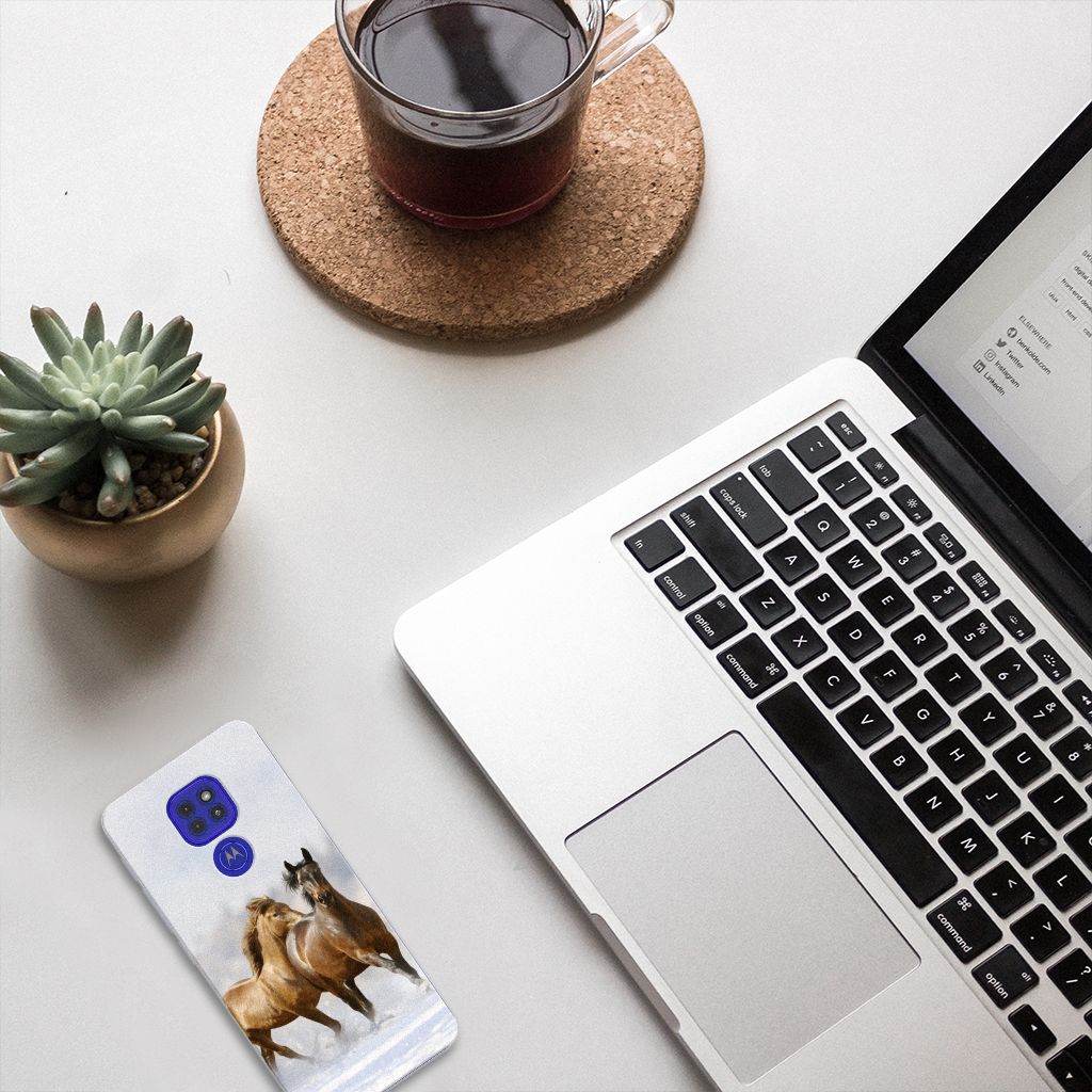 Voor de paardenliefhebbers onder ons hebben we onze collectie uitgebreid met dit design hoesje met print van paarden. Vroeger hield de mens vooral werkpaarden, inmiddels hebben we vriendschap gesloten met het paard. Vandaar dat het ook een favoriet dier is op onze smartphonehoesjes, zoals deze tpu case. Een TPU Hoesje voor de Motorola Moto G9 Play | E7 Plus met Paarden is niet alleen super mooi en chique, maar ook nog eens zeer flexibel. Verder is de case schokabsorberend en heeft het opstaande randen. Zie je liever je eigen paard terug op een hoesje. Dat kan! Door zelf een uniek hoesje te ontwerpen, met eigen foto’s en teksten. De TPU case wordt aan de bovenzijde bedrukt, de zijkanten blijven transparant.