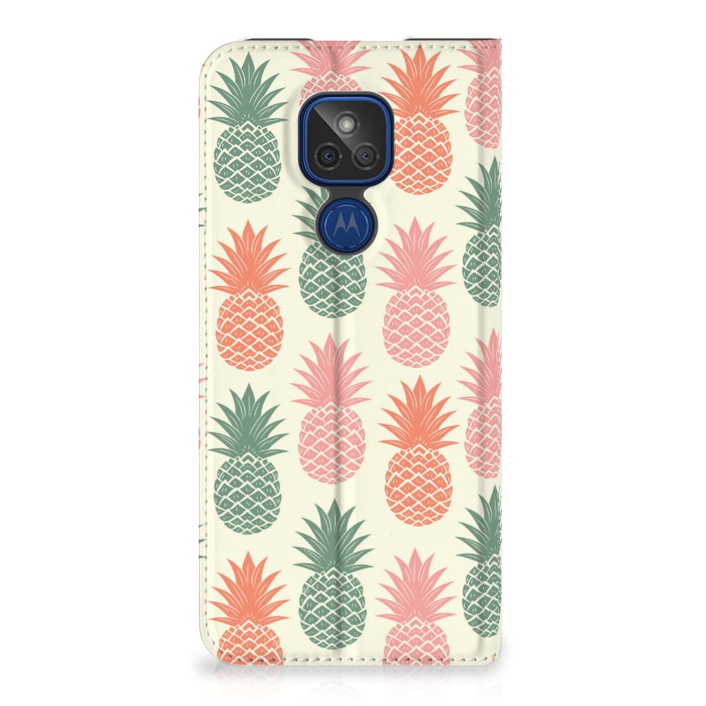 Ananas is een woord uit het Tupi, de taal van de Tupi-indianen, en betekent uitmuntende vrucht. Dit fruit van zeer hoge kwaliteit staat op onze superieure boekhoesjes, stand cases, hard cases en TPU cases. Jij blijft er gezond uitzien als je zo nu en dan een hap neemt van een Ananas , jouw smartphone blijft tip top in orde als je er een leuk telefoonhoesje omheen doet. Een ananas heeft stevig, veerkrachtig vruchtvlees. Een beetje te vergelijken met het TPU in onze hoesjes. TPU is elastisch materiaal, dat zeer buigzaam is. Vandaar dat het zeer schokbestendig is. Het ananas design staat op een stand case. Deze Motorola Moto G9 Play Flip Style Cover beschermt jouw telefoon aan alle kanten en beschikt over een 1 opbergvakje en een speciale standaard. Het hoesje wordt afgesloten met een magneet aan de binnenzijde. De houder aan de binnenzijde is van TPU.