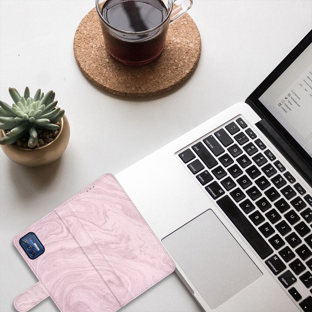 Motorola Moto G9 Plus Bookcase met magnetische sluitclip Marble Pink