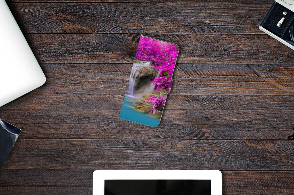 Op deze Motorola Moto G9 Plus Flip Cover zie je een kalme waterval en de achtergrond is gevuld met paarse bomen. Samen creëert dit een prachtig en kleurrijk spektakel, iets wat je graag op je Motorola Moto G9 Plus hoesje ziet. Wanneer je hiernaar kijkt, word je direct kalm. Als jij je even boos of verdrietig voelt, hoef je alleen maar naar jouw boekhoesje te kijken om weer blij te worden. Ook jouw telefoon zal blij zijn met deze Flip Cover aangezien deze goede bescherming biedt. Als jij je telefoon per ongeluk laat vallen, is er niets aan de hand. Het hoesje zorgt ervoor dat de telefoon intact blijft. Zelfs als hij op het beeldscherm zou vallen, is er dankzij de magnetische sluiting, niets aan de hand.