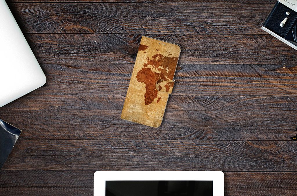 Motorola Moto G9 Plus Flip Cover met pasjes Wereldkaart