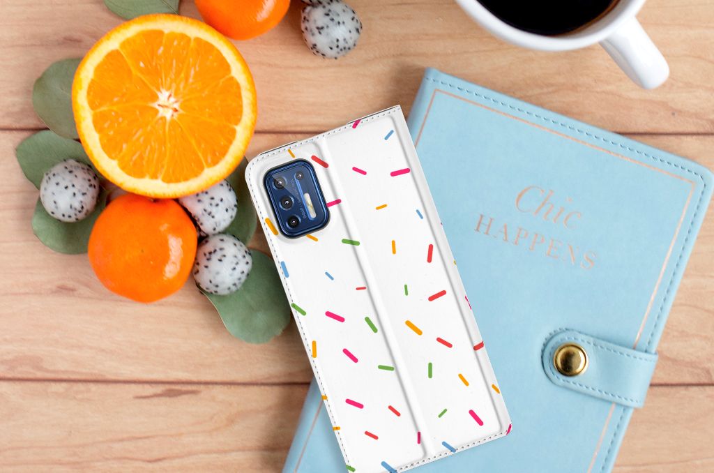 De cartoon met Donut op dit design hoesje geeft jouw smartphone een grappige en vrolijke uitstraling. De Motorola Moto G9 Plus Flip Style Cover zorgt ervoor dat je je schouders op zult halen als je telefoon een keer op de grond valt. Omdat er geen schade zal optreden kun jij je weg weer heel makkelijk vervolgen. De grappige Donut Care stand case is een zeer populair product. Allereerst is het nergens anders te krijgen. Het design is namelijk van de hand van onze eigen ontwerper. Daarnaast zal de case jouw smartphone aan alle zijden beschermen. Ook heeft het Donut Care hoesje een vakje aan de binnenzijde en een speciale standaard. Ook kun je je eigen unieke hoesje ontwerpen, met eigen cartoons, foto’s en teksten. De houder aan de binnenzijde van de Donut Care case is van TPU, de buitenzijde van PU leer.