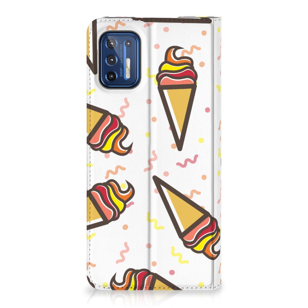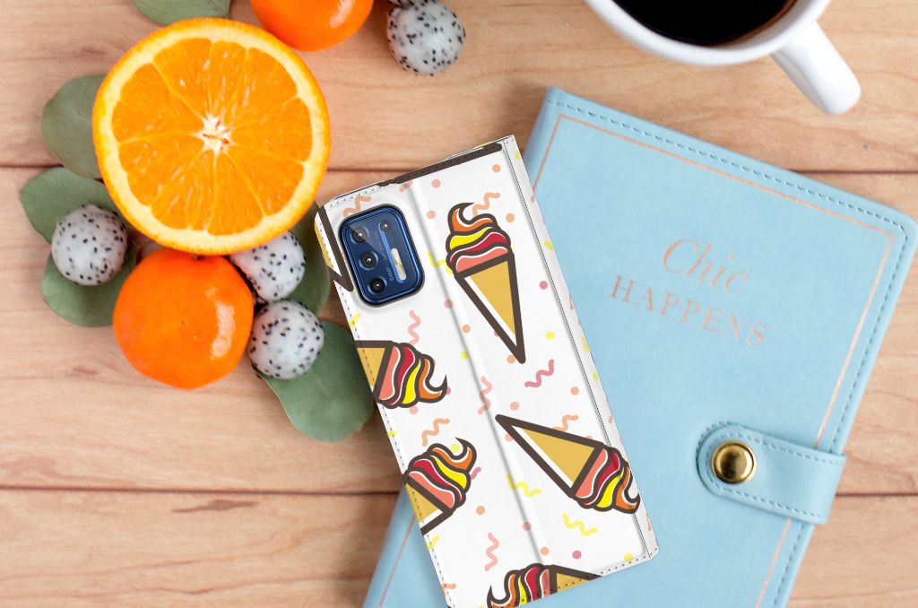 Een vrolijke Motorola Moto G9 Plus Flip Style Cover met daarop verschillende ijsjes. Als je daar geen zomers gevoel meer van krijgt, weten wij het ook niet meer. De zomer en ijsjes zijn onlosmakelijk met elkaar verbonden. Tijdens een bezoekje aan het strand mag een lekker ijsje bijvoorbeeld niet ontbreken. Een design hoesje met lekkere Icecream print past daar natuurlijk ook ontzettend goed bij. Jouw telefoon is helemaal beschermd met een stand case met ijsjes design. De aankoop van deze case is een heerlijke investering, die zich gegarandeerd terugbetaalt. Alle zijden van dit hoesje worden bedrukt met ijsjes. De case heeft een speciale standaard en de houder aan de binnenzijde is van TPU. Onder alle weersomstandigheden zal deze case met opbergvakje perfect functioneren, ook in de zomer met een ijsje in je hand. Dit smaakvolle hoesje is zeer goedkoop te bestellen en wordt zeer snel bezorgd.