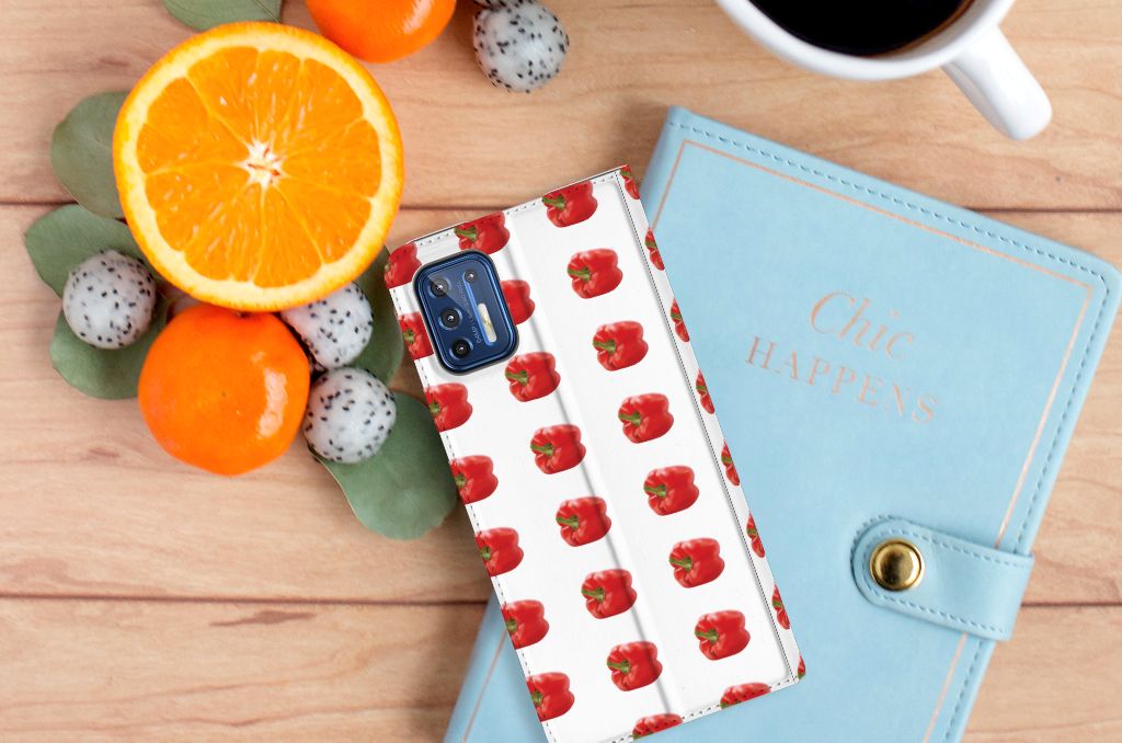 Er zit pit in jouw Motorola Moto G9 Plus Flip Style Cover dankzij dit design met rode paprika’s. Paprika’s zijn er in allerlei kleuren en vormen en ze hebben gemeen dat ze heel erg gezond zijn. De rode paprika’s op deze case staan op een grijs met witte geblokte achtergrond en vormen een opvallende verschijning. Heb jij ooit iemand in je nabije omgeving rond zien lopen met een design hoesje met rode paprika’s? Waarschijnlijk niet. Dit stand hoesje met rode paprika’s beschermt jouw telefoon aan alle zijden en beschikt over een opbergvakje voor een pasje of briefgeld. De case sluit perfect af met de magneet aan de binnenzijde. Zeker weten dat je met dit hoesje met rode paprika’s een smartphone accessoire te pakken hebt waarmee je jezelf in de schijnwerpers zet. De houder aan de binnenzijde van de stand case met rode paprika’s is van TPU. Als je andere kleuren paprika’s op je hoesje wilt, raden we je aan ons assortiment design hoesjes te bekijken of zelf een hoesje te ontwerpen.