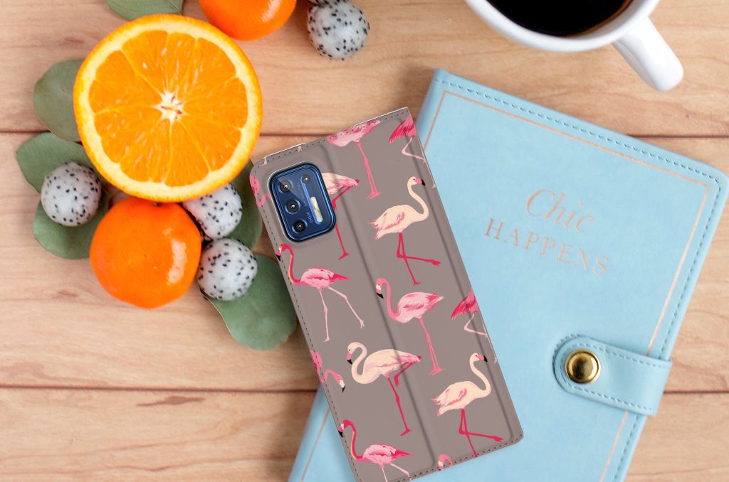 Een Motorola Moto G9 Plus Hoesje maken met rode flamingo’s is in vele opzichten bijzonder. De rode flamingo op het hoesje komt oorspronkelijk uit het Caraïbische gebied. Stel dat je in deze regio vakantie viert, dan val je zonder meer op met dit hoesje met flamingo’s. Deze stand case biedt bescherming voor alle zijden van je telefoon. Jouw smartphone ligt goed opgeborgen in de TPU houder aan de binnenzijde en in dit gedeelte van het hoesje met flamingo’s zit de magnetische sluiting. De lichtroze flamingo, ook present op deze case, wordt tegenwoordig als aparte soort gezien naast de rode flamingo. De stand case met flamingo’s heeft vakjes voor pasjes en is op maat gemaakt.