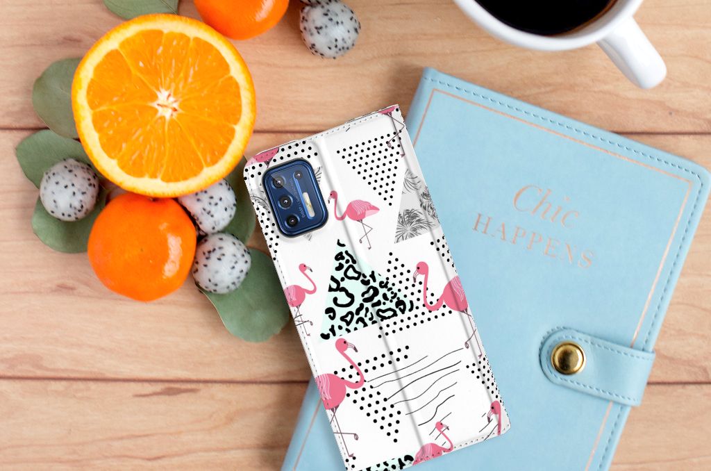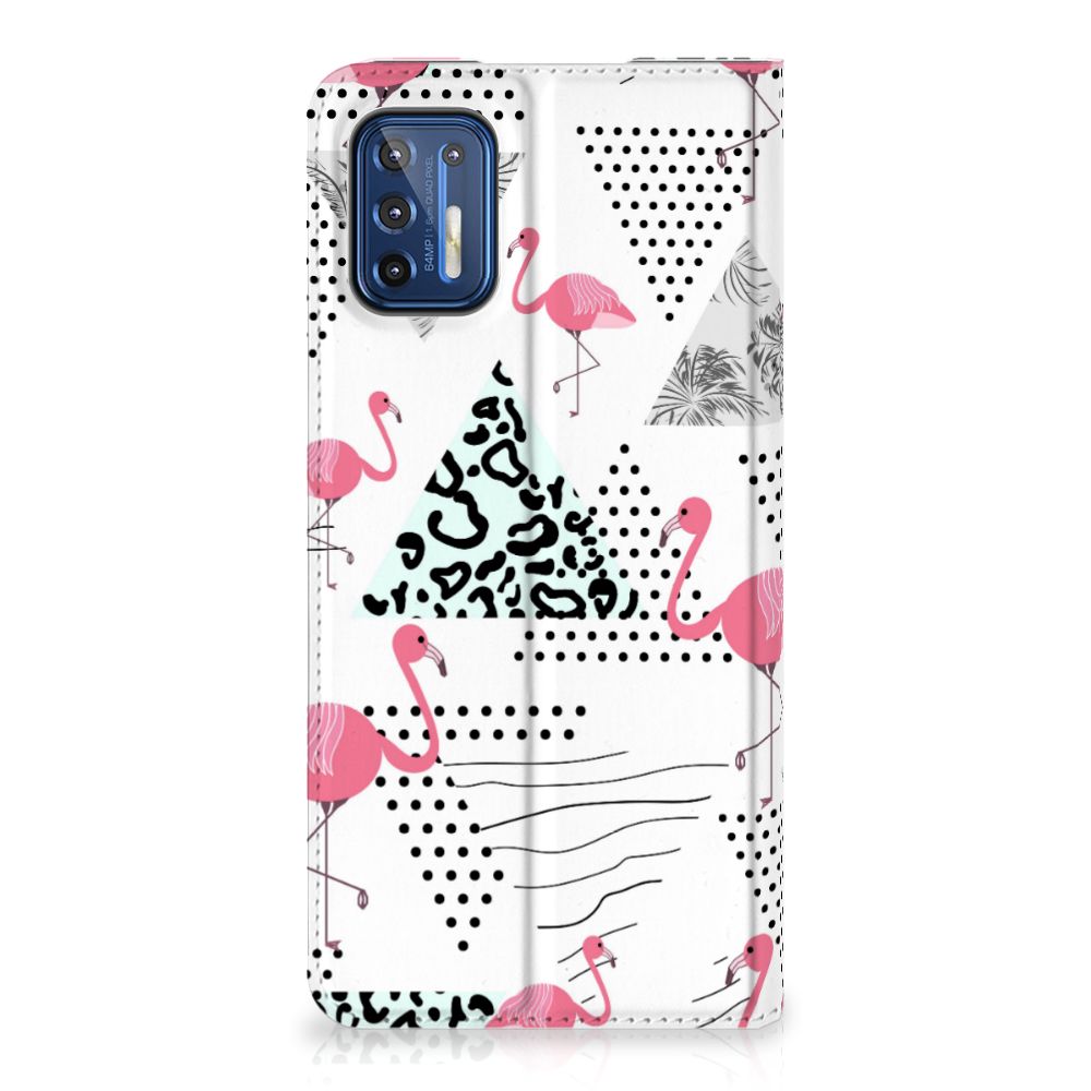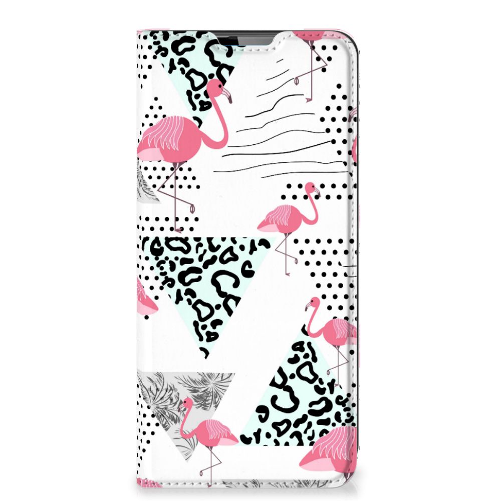 Een Motorola Moto G9 Plus Hoesje maken met Flamingo Triangle is in vele opzichten bijzonder. De rode flamingo op het hoesje komt oorspronkelijk uit het Caraïbische gebied. Stel dat je in deze regio vakantie viert, dan val je zonder meer op met dit hoesje met flamingo’s en driehoeken. Deze stand case biedt bescherming voor alle zijden van je telefoon. Jouw smartphone ligt goed opgeborgen in de TPU houder aan de binnenzijde en in dit gedeelte van het hoesje met flamingo’s en driehoeken zit de magnetische sluiting. Ook de palmbomen op deze stand case bieden het ultieme vakantiegevoel. De stand case met flamingo’s en driehoeken heeft vakjes voor pasjes en is op maat gemaakt.