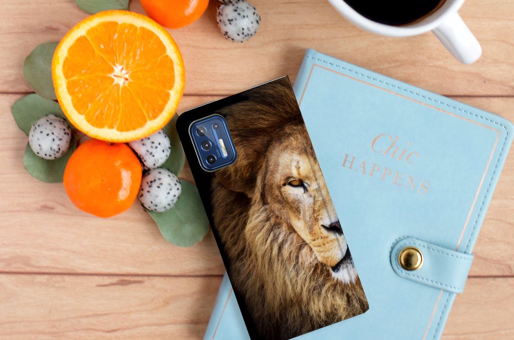 We hebben een grote verzameling katten op onze hoesjes staan, waarvan de leeuw na de tijger de grootste is. De Leeuw op het design hoesje ziet er door de indrukwekkende manen bijzonder krachtig uit. De kracht straalt ook af op deze Motorola Moto G9 Plus Hoesje maken, die jouw smartphone aan alle zijden perfect beschermt. De magnetische sluiting aan de binnenkant is bijzonder handig en nuttig. Rond het begin van de jaartelling had de leeuw een veel grotere verspreiding dan nu. De afgelopen 20 jaar is het aantal leeuwen met 30 tot 50% afgenomen. Zonde natuurlijk. Dit design hoesje met leeuw zal in elk geval nooit verloren gaan. De print op deze case is zeer duurzaam. Jouw smartphone past perfect in de houder van TPU aan de binnenzijde, waarin je ook een pasje kunt stoppen. Verder heeft de case een standaard.