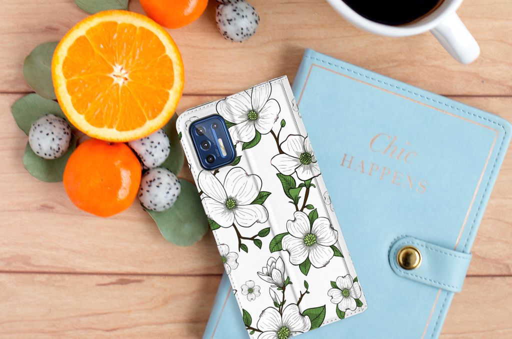 Ben je op zoek naar een uniek telefoonhoesje voor je Motorola Moto G9 Plus? Dan ben je bij B2C Telecom aan het juiste adres! Speciaal voor jou hebben we dit prachtige Dogwood Flowers design in onze collectie hoesjes opgenomen. Het design wordt bedrukt op een Smart Cover en heeft een vakje aan de binnenkant voor een pasje. Het fijne aan dit hoesje is dat je het als standaard neer kunt zetten. Hierdoor geniet je nog meer als je een filmpje aan het kijken bent op je telefoon. Het hoesje wordt afgesloten door magneten aan de binnenkant. Wil je dit design hoesje nog iets extra's geven? Voeg dan gratis je naam of een quote toe! Is dit design hoesje toch niet helemaal wat je zocht? Ontwerp dan zelf een hoesje in ons ontwerpprogramma.