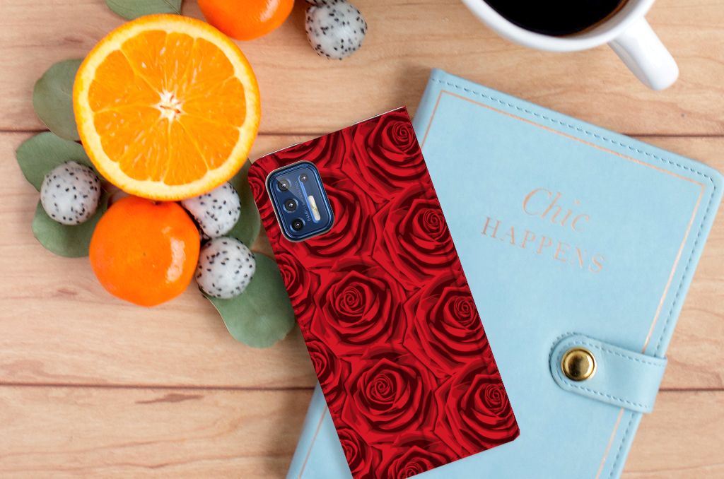 Ben je op zoek naar een uniek telefoonhoesje voor je Motorola Moto G9 Plus? Dan ben je bij B2C Telecom aan het juiste adres! Speciaal voor jou hebben we dit prachtige Red Roses design in onze collectie hoesjes opgenomen. Het design wordt bedrukt op een Smart Cover en heeft een vakje aan de binnenkant voor een pasje. Het fijne aan dit hoesje is dat je het als standaard neer kunt zetten. Hierdoor geniet je nog meer als je een filmpje aan het kijken bent op je telefoon. Het hoesje wordt afgesloten door magneten aan de binnenkant. Wil je dit design hoesje nog iets extra's geven? Voeg dan gratis je naam of een quote toe! Is dit design hoesje toch niet helemaal wat je zocht? Ontwerp dan zelf een hoesje in ons ontwerpprogramma.