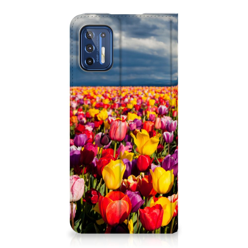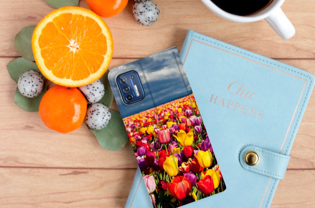 De tulp is een oer-Nederlandse bloem en heeft een lange geschiedenis. Deze Motorola Moto G9 Plus Smart Cover met Tulpen ziet er bijzonder kleurrijk uit. Dit fleurige smartphone hoesje geeft een bijzondere bescherming van jouw apparaat. Tulpen zijn ideaal voor een kleurrijk begin van het tuinseizoen. Iedereen wordt er vrolijk van om te zien hoe deze bloemen het voorjaar kleur geven en het begin van de warmere tijd van het jaar aankondigen. Dan kan het toch niet anders of jij wordt heel erg blij van deze stand case met tulpen? Deze populaire stand case heeft ruimte voor een pasje of briefgeld aan de binnenzijde en wordt magnetisch afgesloten. De houder aan de binnenkant is van TPU en de case wordt aan alle zijden bedrukt met tulpen. Je kunt ook zelf een stand case maken met daarop jouw favoriete bloemen.