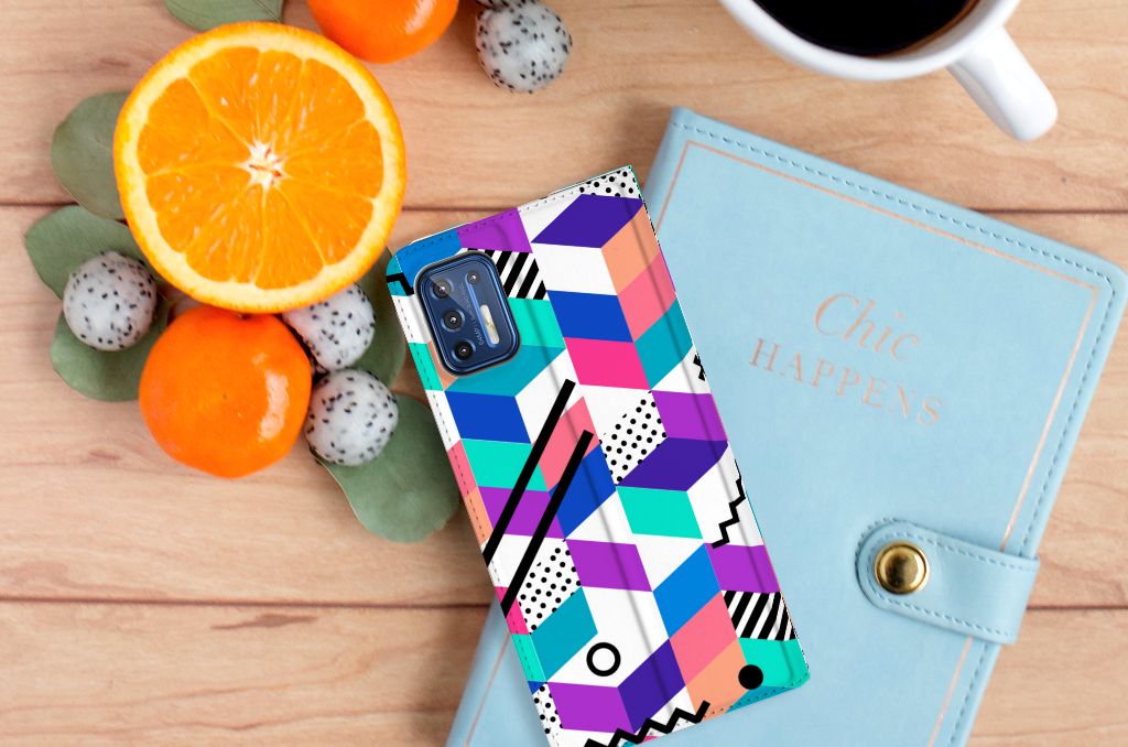 Stand Case Motorola Moto G9 Plus Design Blokken Kleurrijk