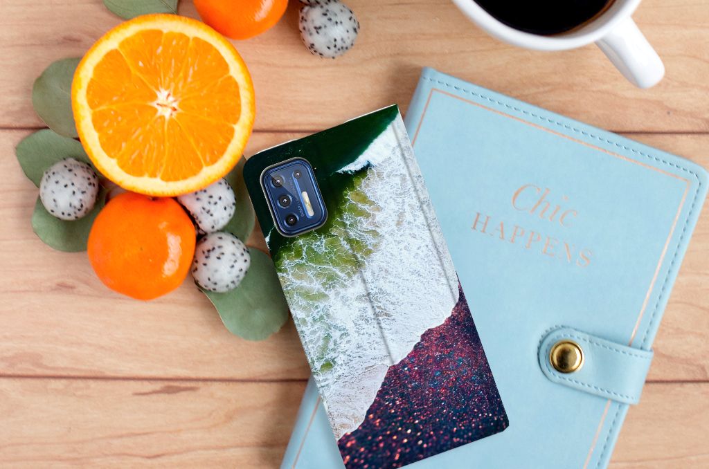Ben je een beetje een artistiek type? Dan kan je wel eens enthousiast raken van dit smartphonehoesje. ‘Sea in Space’, zo noemt onze grafisch designer dit ontwerp. Dus mensen die van zon en zee kunnen genieten en tegelijkertijd van science fiction houden zullen deze case ongetwijfeld mooi vinden. Een beetje glitter en glamour zou je met een beetje fantasie ook nog wel kunnen ontdekken in dit design hoesje. Dit artistieke kunstwerkje is voor heel weinig geld te bestellen op onze website. Je krijgt er maximale bescherming van je Motorola Moto G9 Plus voor terug. Het design staat op een Stand Case. Deze case beschermt jouw telefoon aan alle kanten en beschikt over een 1 opbergvakje en een speciale standaard. Het hoesje wordt afgesloten met een magneet aan de binnenzijde. De houder aan de binnenzijde is van TPU.